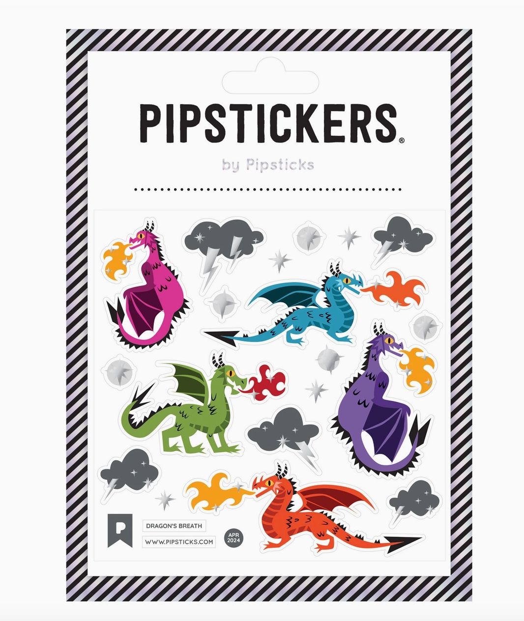 PipStickers are the PERFECT gift for the sticker lover in your life - even if it's you! These unique PVC designs with holographic silver foil accents come on a clear backing and cannot be found anywhere else.<br />Includes one 4'' x 4'' sheet of Dragon's Breath PipStickers and includes the Pipsticks manifesto.