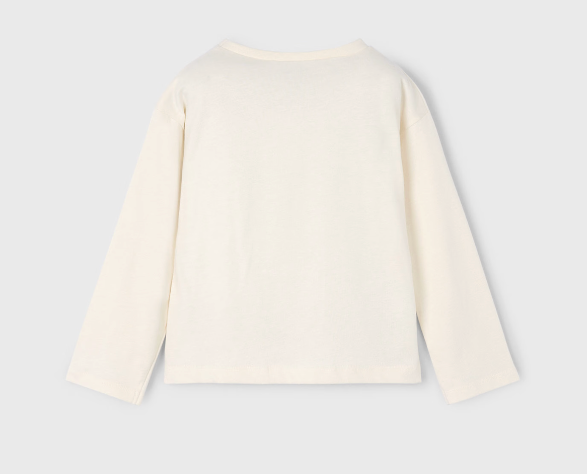 Long sleeved T-shirt for girls. Flowy fabric for maximum everyday comfort. Decorative elements: floral applique, Crochet details.