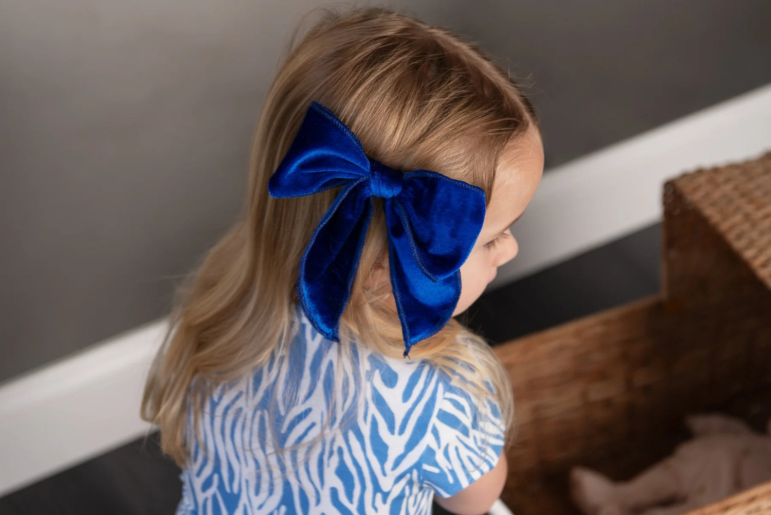 Add some dressy charm to your little girl's look with our Drapey Velvet Bow! These bows are held securely with a teeth clippie. Perfect for adding a touch of playful sweetness to any hairstyle.
