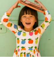 Our signature Good Apples dress is made with stretchy-soft organic cotton and features a scooped back, pockets for all their treasures, and a full circle skirt made for twirling.