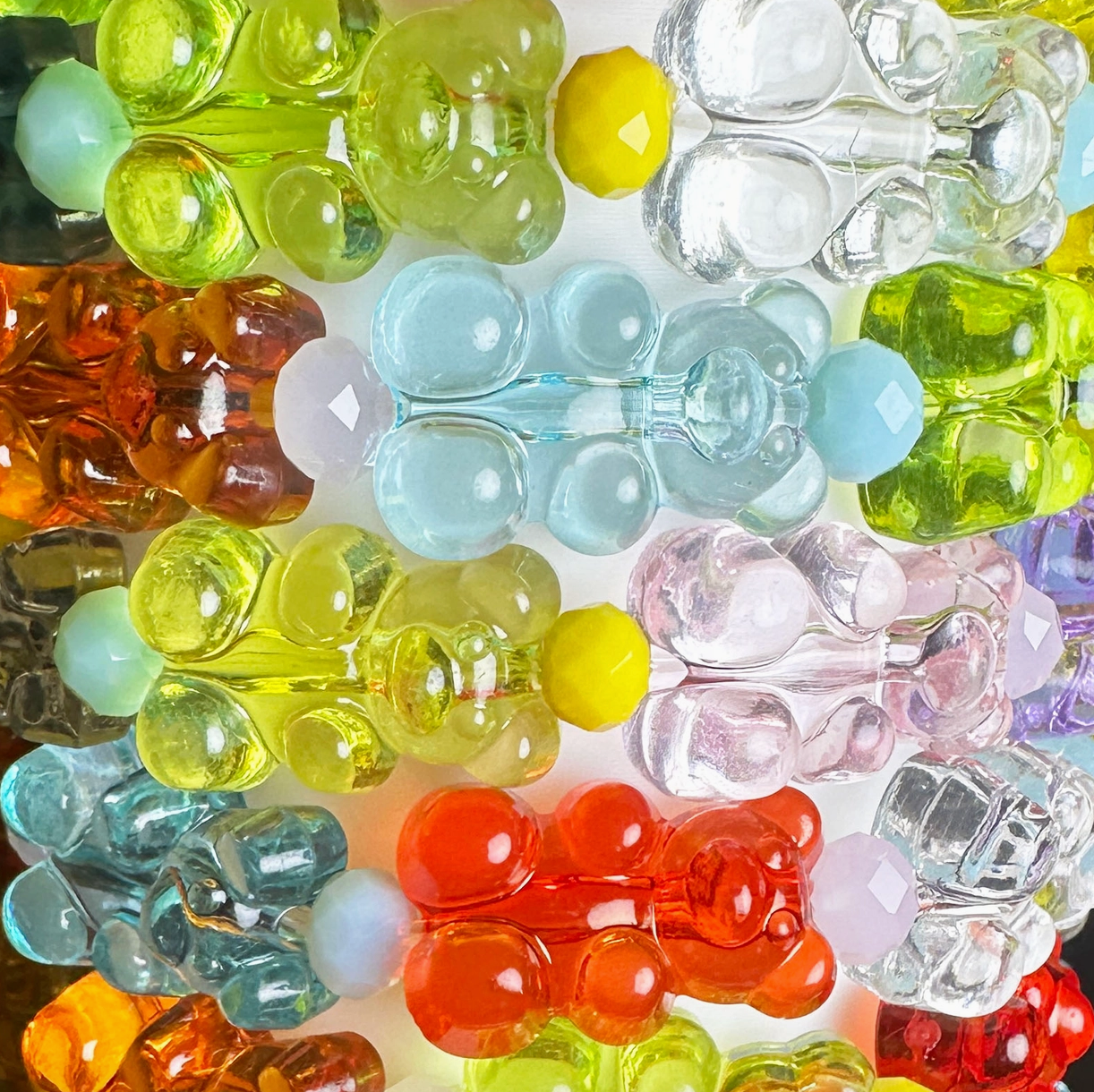 Adorable Multi-Colored Gummy Bear bracelets. The bracelet is 6 Inches and stretchy. Bracelets shipped as shown. Handmade in the USA! Perfect for children, teens, and tweens!