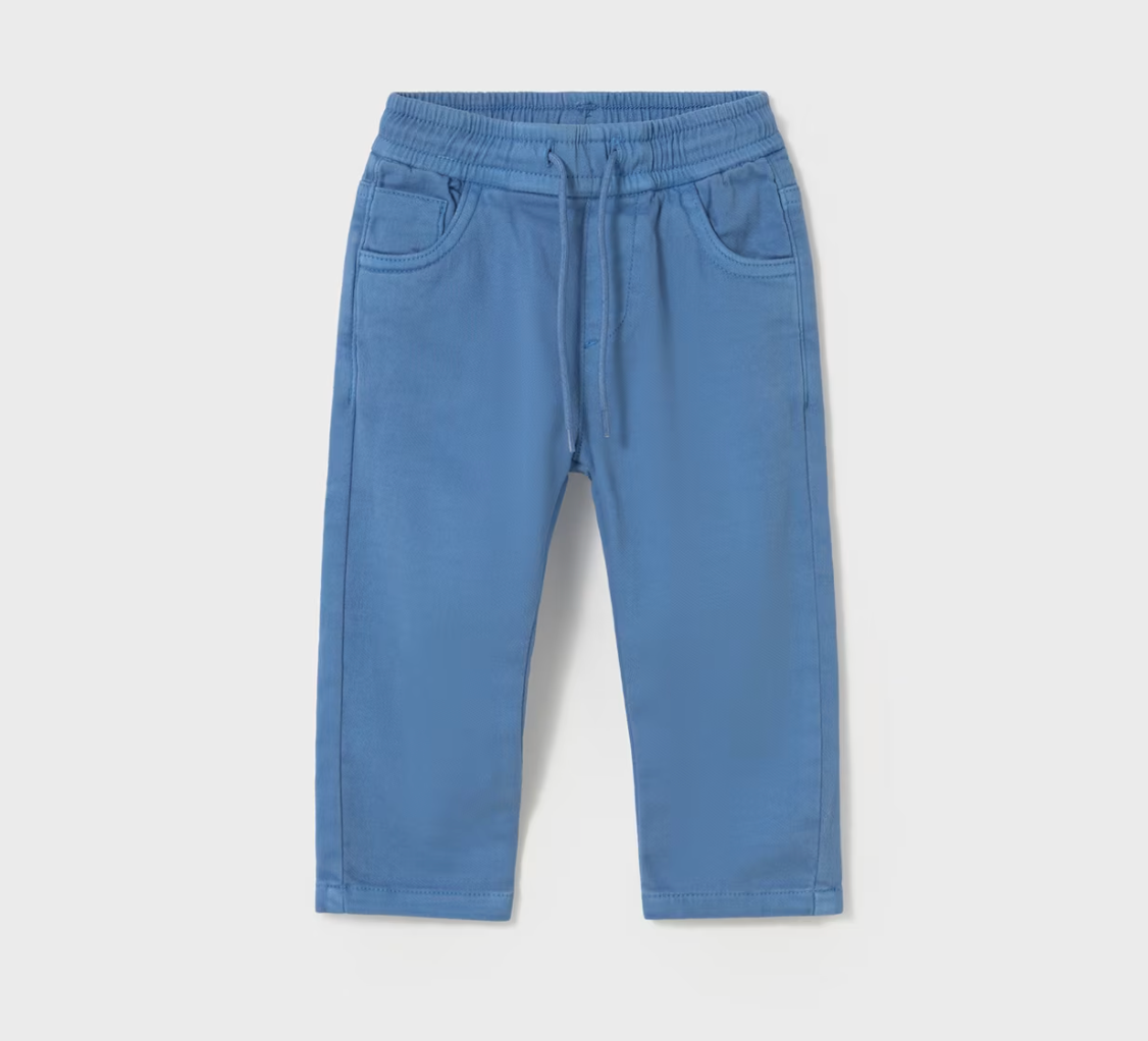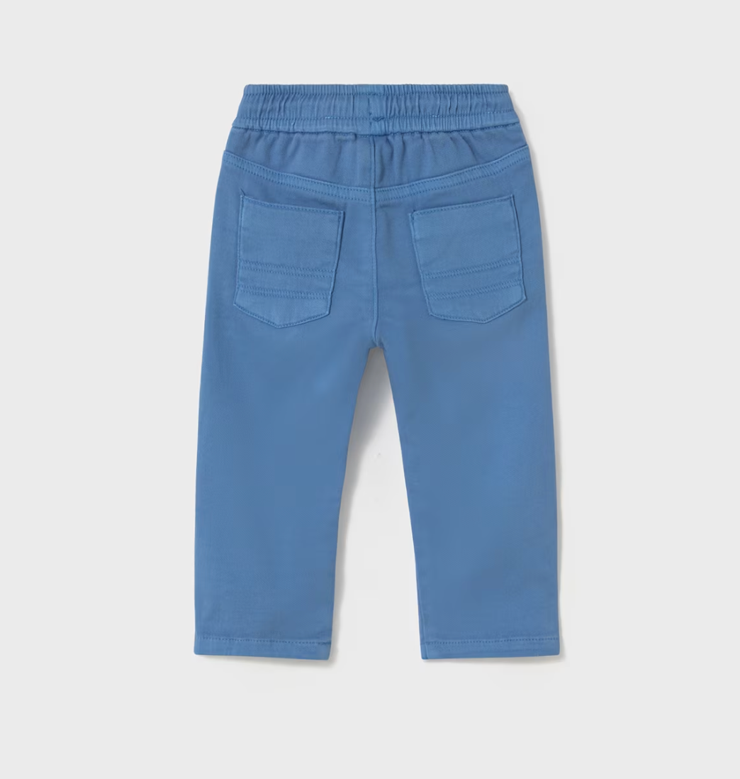 Baby long pants in a classic fit with straight legs (Regular fit). Adjustable interior drawstring waistband. Durable twill fabric for comfort and strength. Functional front and back pockets.