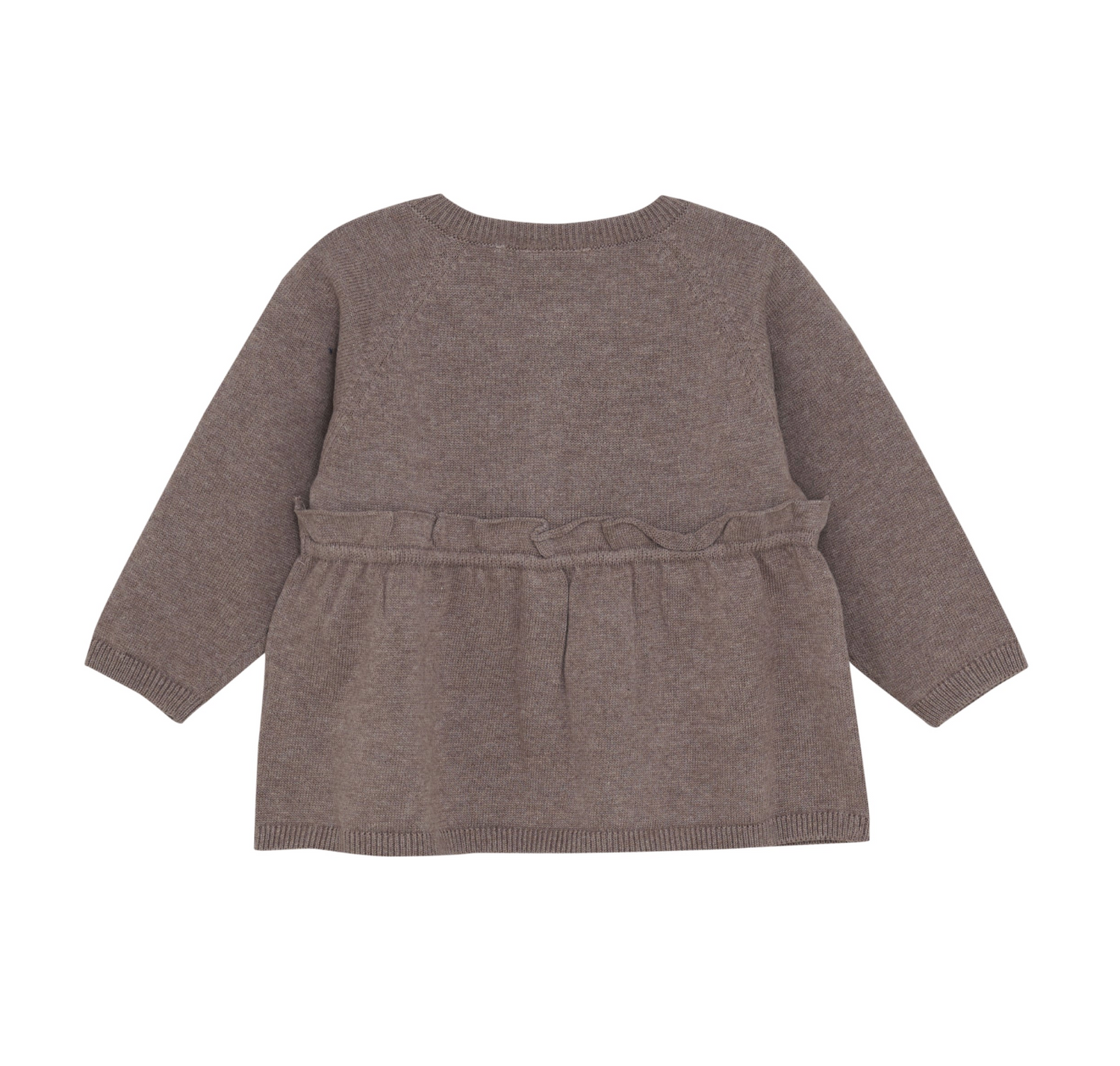 Cute cardigan from Minymo. The cardigan features a delicate ruffle detail at the waist and simple buttons, giving it an elegant and stylish look. It is finely knitted from a soft cotton blend, making it comfortable against the skin.