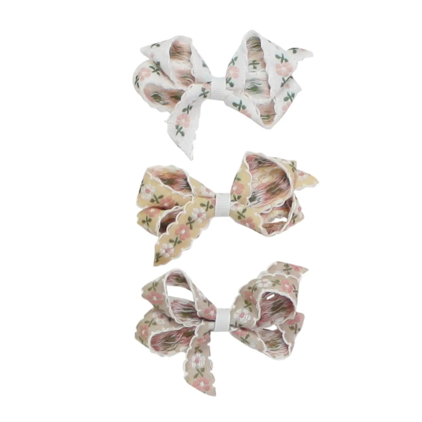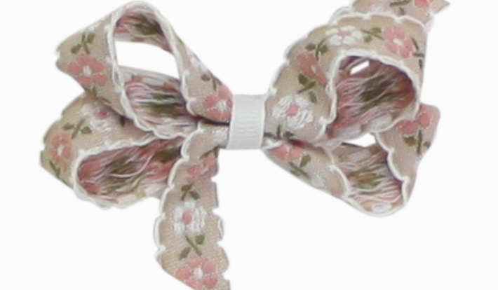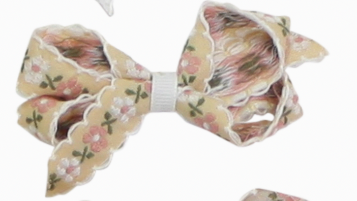 Dainty long tail embroidered ribbon with scalloped stitch. Available in 3 different colors for you to choose.