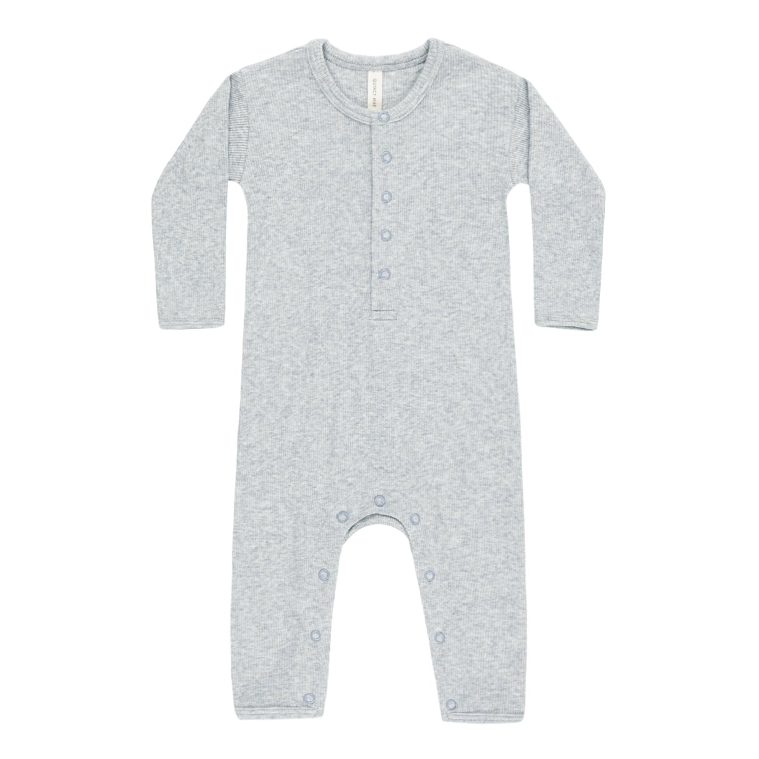 Long sleeve baby jumpsuit in our stretchy ribbed melange knit, designed with snaps along the front and inseam for easy, comfortable wear.