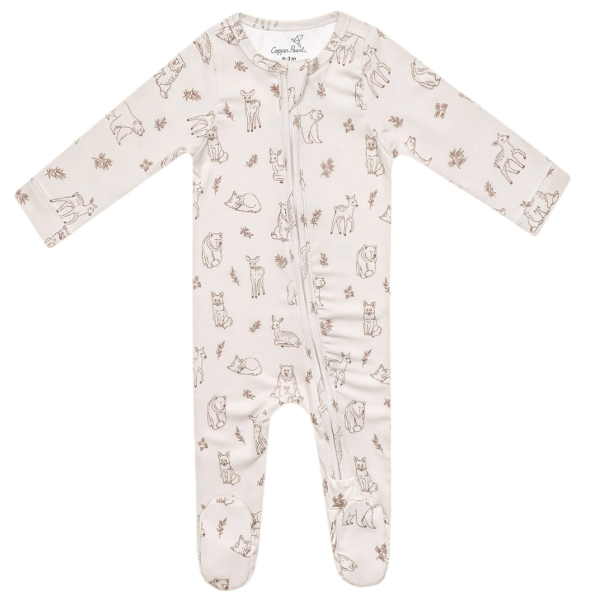 We’ve dreamed up the perfect footie pajamas, featuring buttery soft fabric, a tag-free design, and a two-way zipper for easy changing. Pick your favorite Copper Pearl print for a stylish night’s sleep!