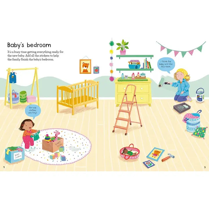 Welcome a new baby with the First Sticker Book The New Baby by Usborne! This delightful sticker book guides children through all the exciting stages of a new sibling’s arrival. With over 150 stickers, kids can decorate the nursery, gather baby essentials, visit the hospital, and help with bedtime routines. A playful and engaging way to introduce little ones to the joys of welcoming a new family member.