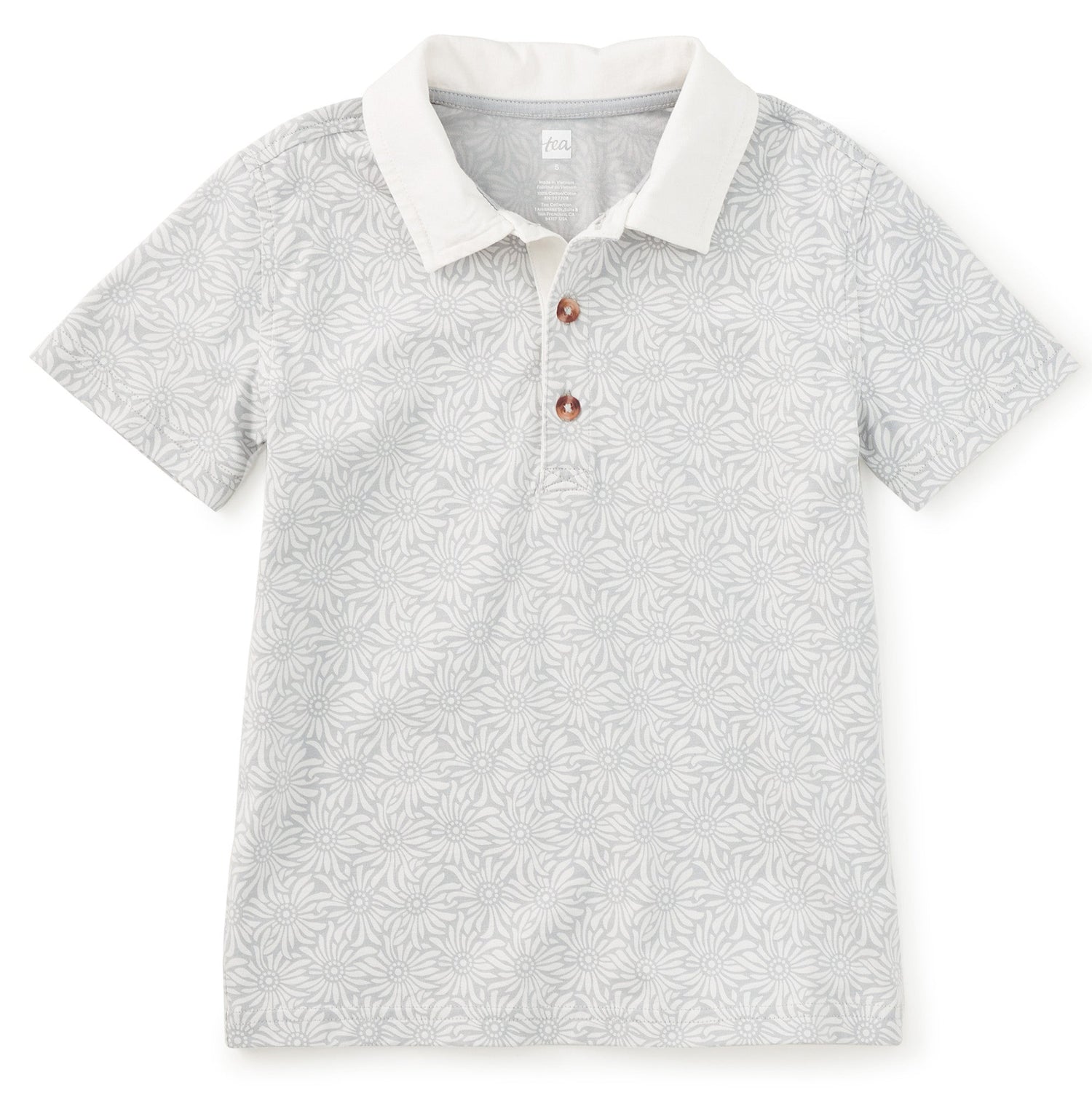 A classic polo silhouette refreshed with an allover print that feels playful yet polished. The foldover collar and clean button placket give it a put-together look, while the subtle pattern keeps it fun and easy to wear for both casual days and special moments.