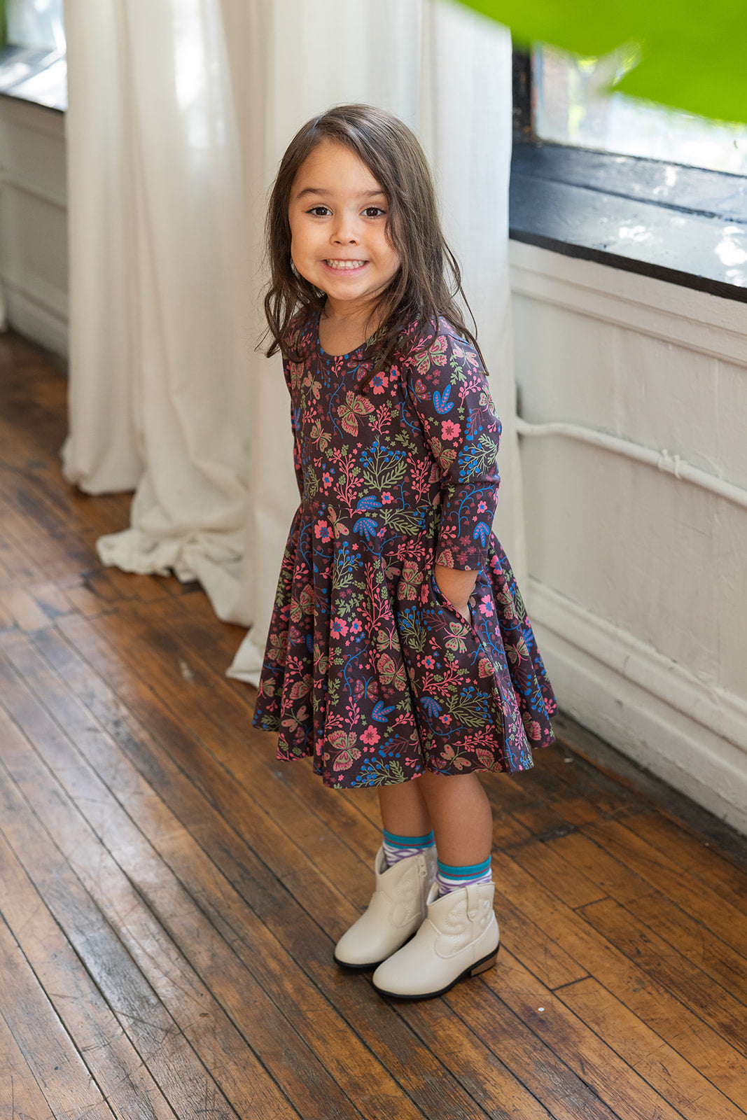 The charming design of this girls dress makes it perfect for parties and special gatherings. The twirl-worthy skater silhouette adds a touch of playfulness, and the three-quarter-length sleeves offer just the right amount of coverage for different weather conditions. Your little princess will feel like a twirling queen as she dances around in this delightful dress!