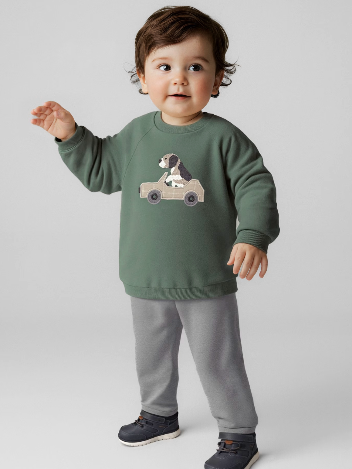 Long sleeved Sweatshirt with elasticated cuffs for baby. Round neckline. Back snap closure. Elasticated hem for a better fit. Decorative elements: embroidery.