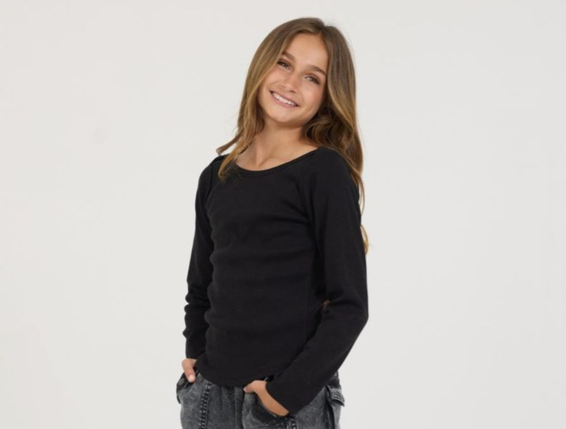Introducing our Black Boatneck Ribbed Top, the perfect basic addition to any wardrobe. Made from soft cotton, this tee is not only great for layering but also exudes a classic and sophisticated style. Perfect for tweens looking to elevate their wardrobe with timeless pieces.