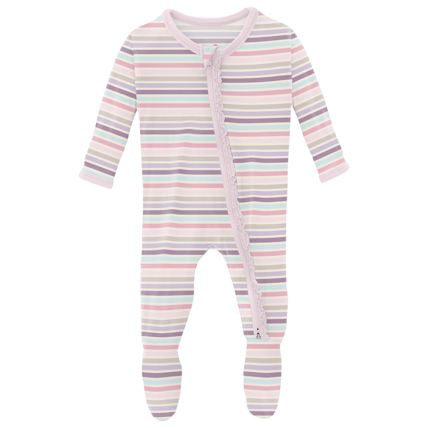 What's a better feeling than zipping your tiny peanut into an adorably snug sleeper? Getting to warm their little fingers and toes with flip paws and footies, that's what! They'll love this coverall for its comfort, and you'll love this coverall for its cuteness and its torso length zipper which makes changes a breeze. Flip into fun with KicKee!