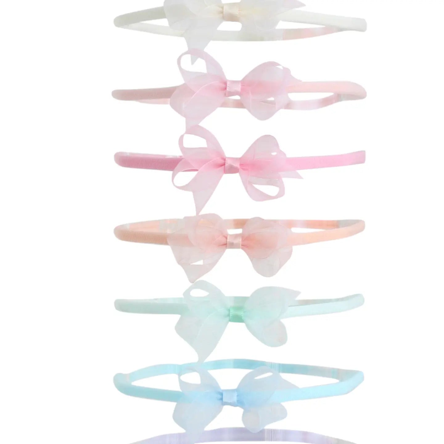 Dainty and airy infant 2” organdy bows on a soft and stretchy nylon headband