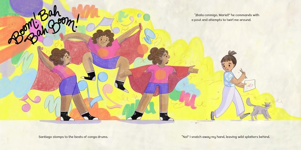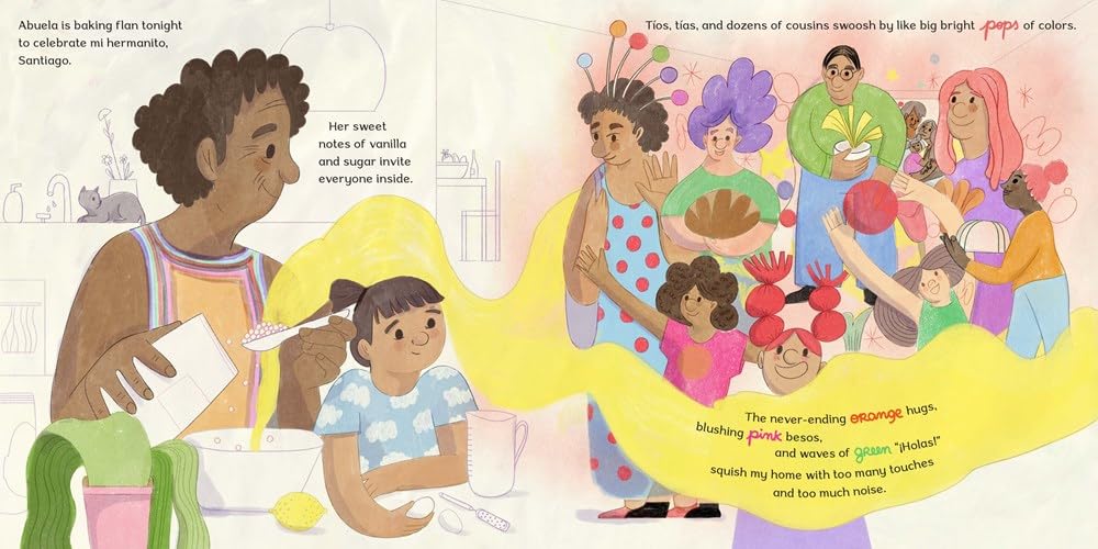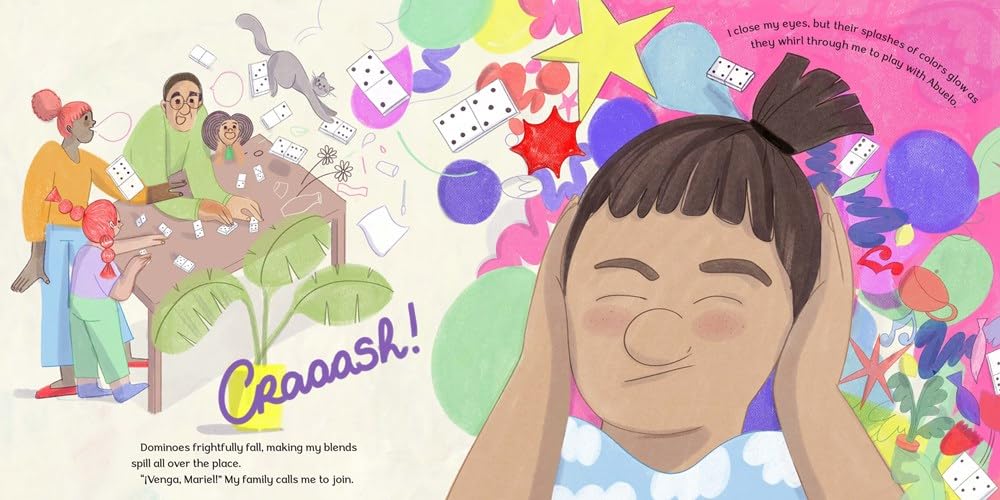 Mariel’s family is a big POP of color! But when her tíos, tías, and cousins arrive for her hermanito’s birthday party, their many besos, noises, and colors start to feel overwhelming. As Mariel’s tears grow into an ocean, she paints a boat to stay afloat and dives into the mighty sea.