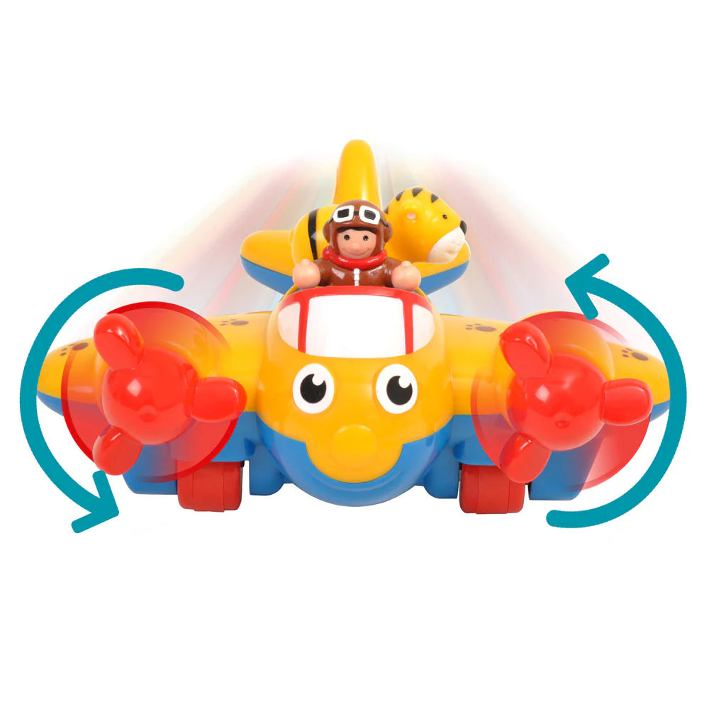 - Push & Go motorized airplane toy with realistic engine sounds and automatic spinning propellers