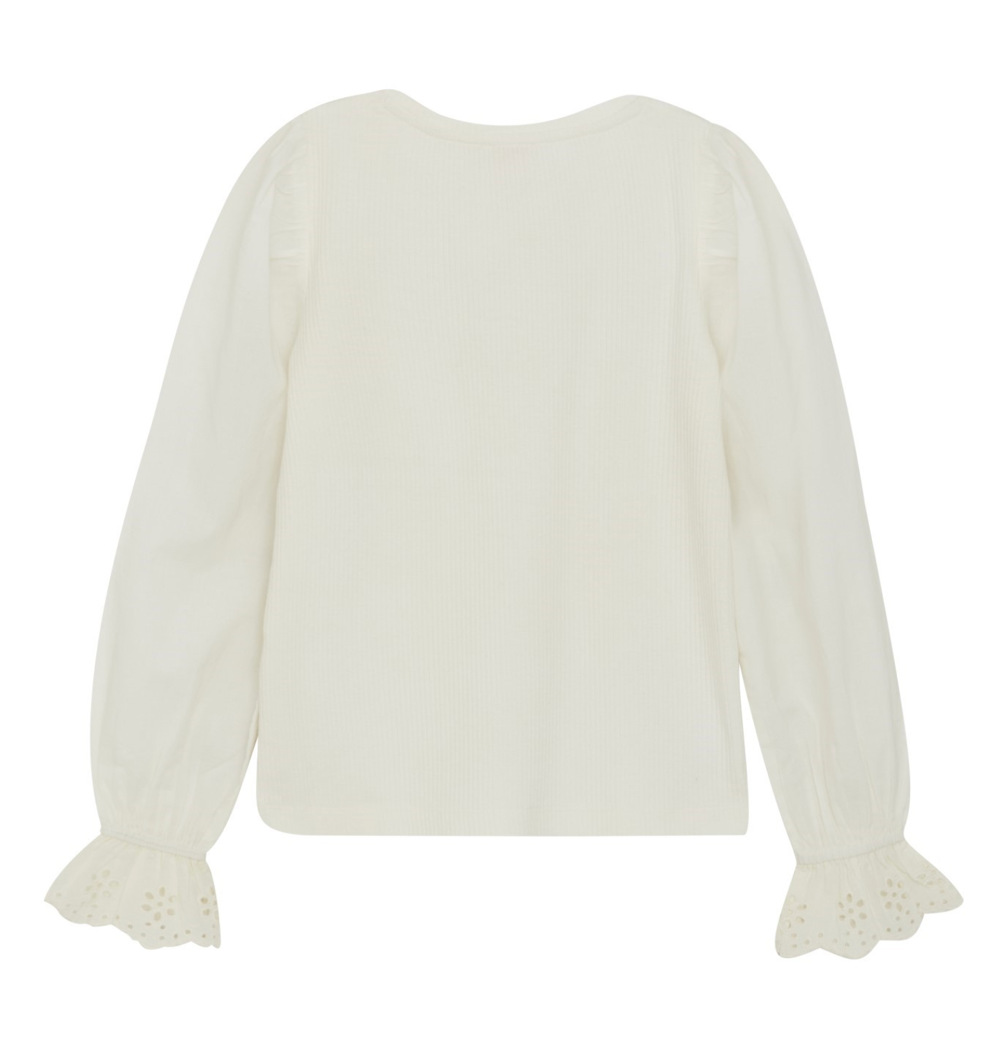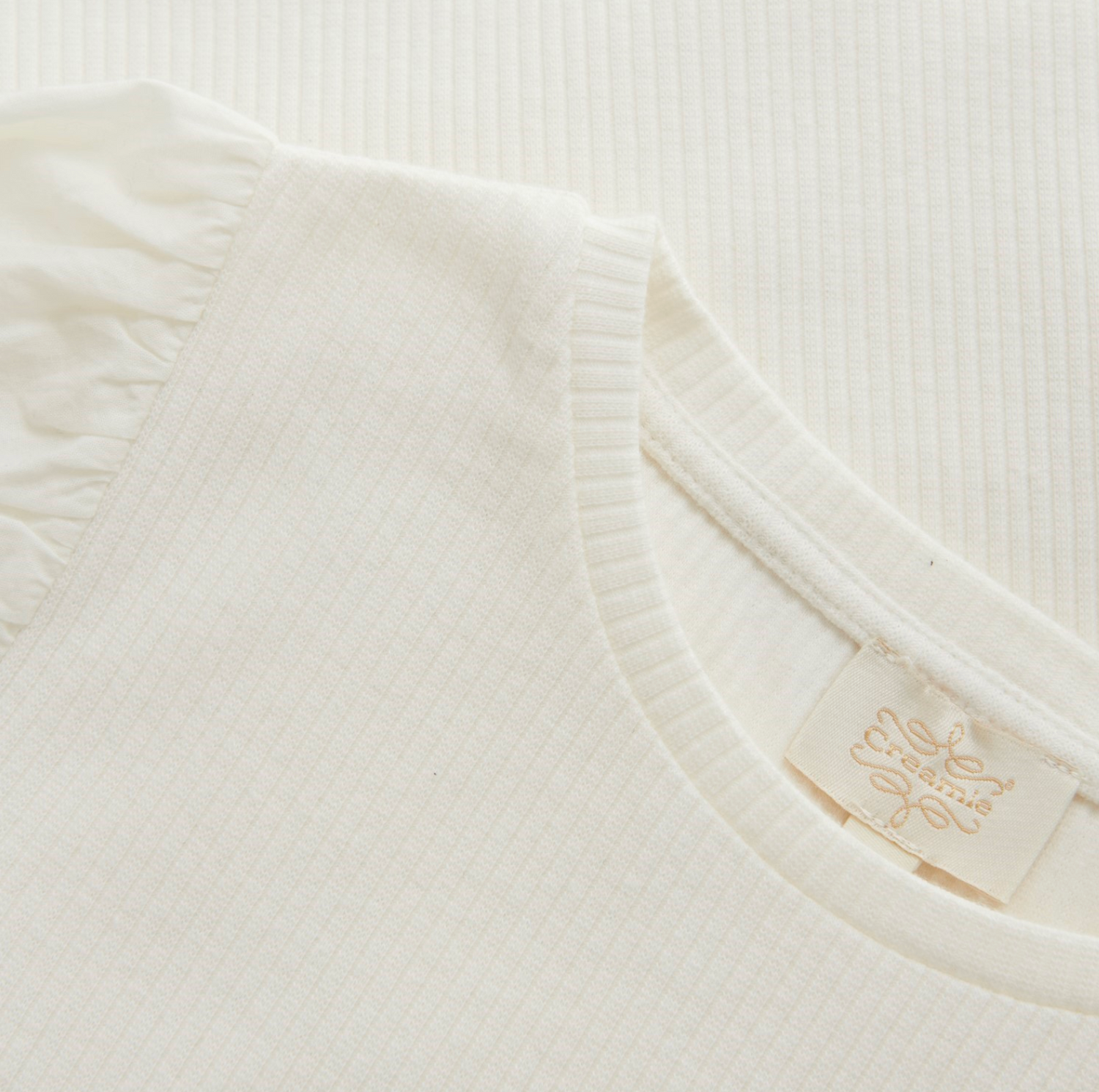 Beautiful, plain ribbed blouse from Creamie with puff sleeves. The puff sleeves are in a tightly woven quality and have broderie anglaise lace in the openings.