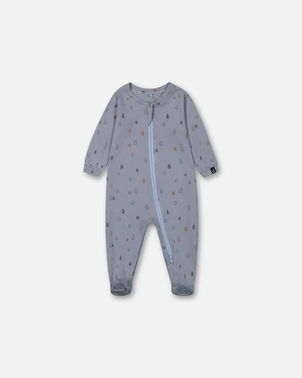 Our Organic Cotton One Piece Pajama Air Blue Printed Trees is so soft and cozy it just might help baby to sleep through the night! This one-piece footie pajama features long sleeves, an asymmetrical zipper closure, and solid trim at the neck and cuffs. An allover pine tree print makes it ideal for the fall and winter seasons!