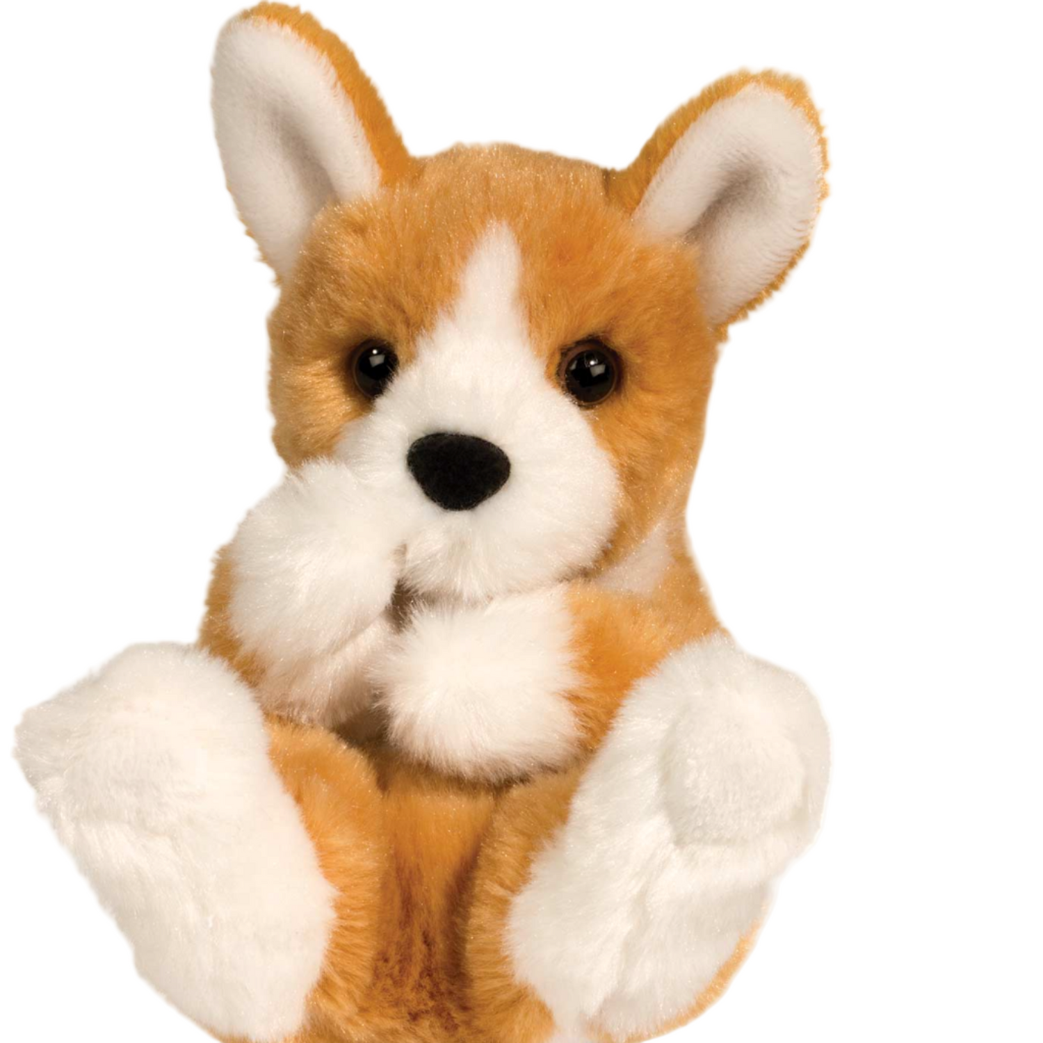 Corgi dogs are certainly cute but tiny Corgis are even more adorable and our Lil' Handful Corgi puppy is as cute as they come! His cuddly shape will find you picking him up again and again for another snuggle. It's really hard to say no to that dark eyed expression and endearing pose when cuddly plush fur makes him so soft! Inside, silky polyester fill adds to his softness and beans in his bottom lend him a realistic weight. This little Corgi pup features realistic markings in white and gold colored plush for a breed specific look that will appeal to fans. Large ears and a flocked, black nose complete his look. Bring home this little bundle of love today or stop by to meet the other Lil' Handful pups in our kennels!