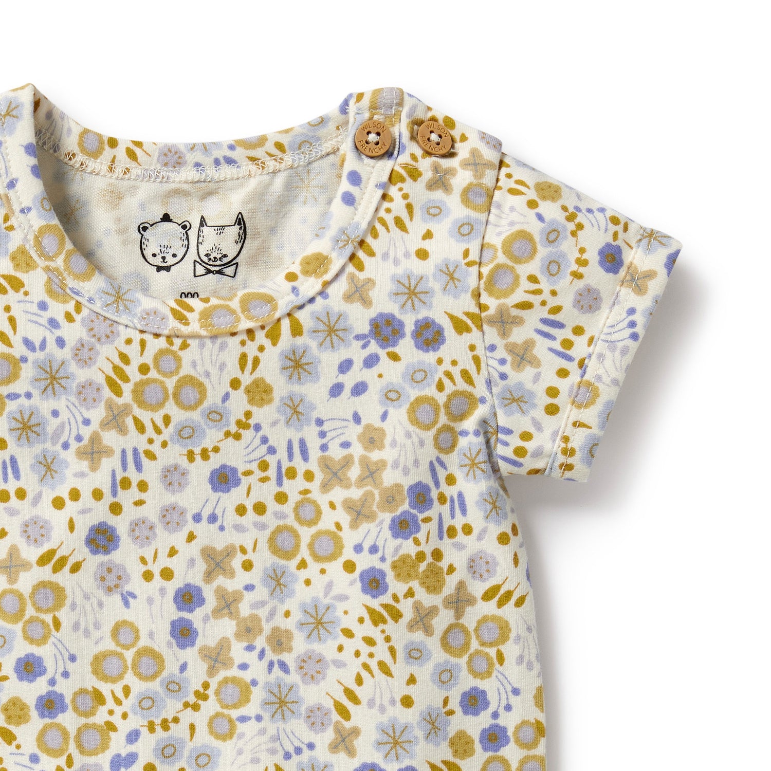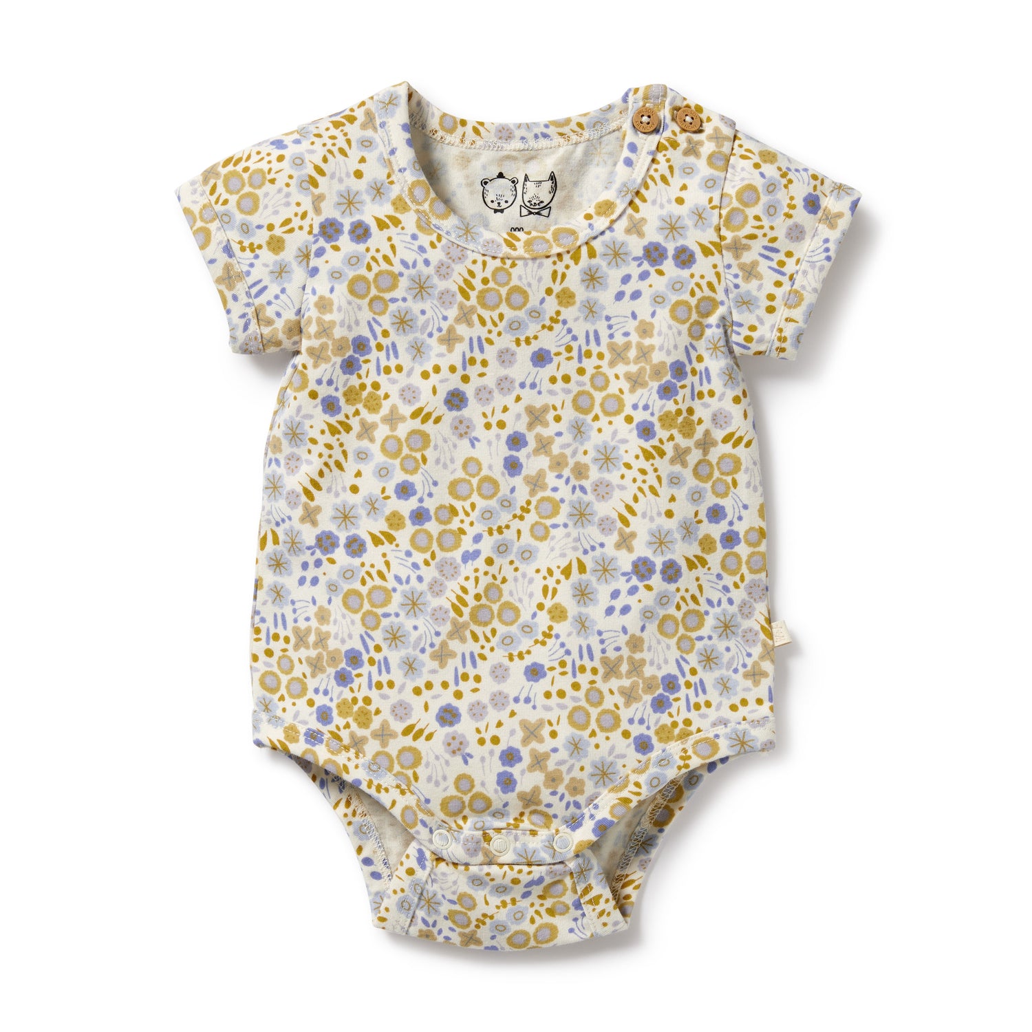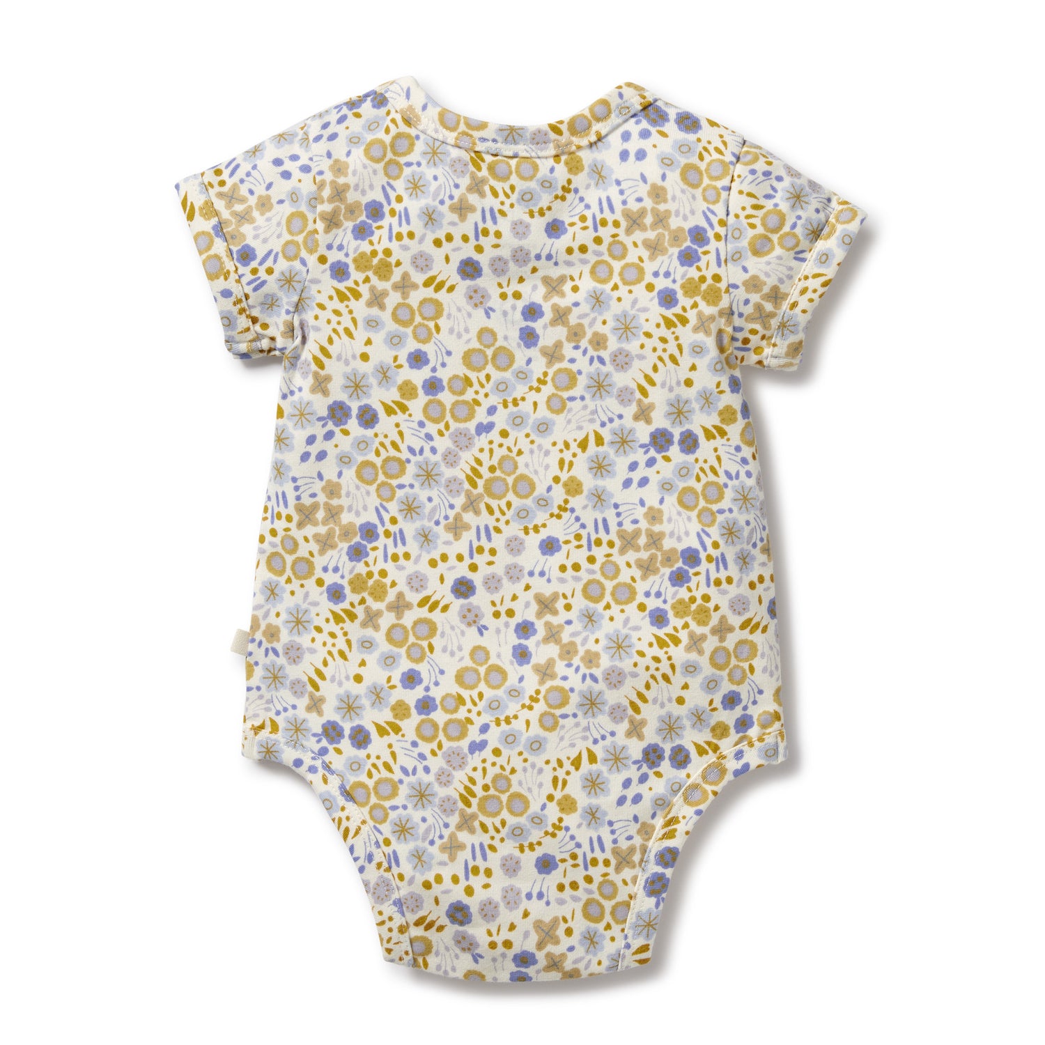 Key Features: Short Sleeved. Side neck opening with mock wood buttons. Snap leg closure for easy changes. Made with GOTS certified organic cotton. Australian owned and designed. Packaged in a bio-degradable bag.
