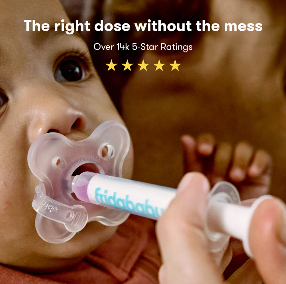 MediFrida delivers the full dose through a soft, familiar paci that sends medicine to the side of the cheek, as recommended by doctors, bypassing baby's taste buds to prevent spit-ups so baby swallows full dose. MediFrida is the only paci-style baby medicine dispenser that doubles as a real pacifier, so dosing doesn't disrupt baby's busy soothing schedule.