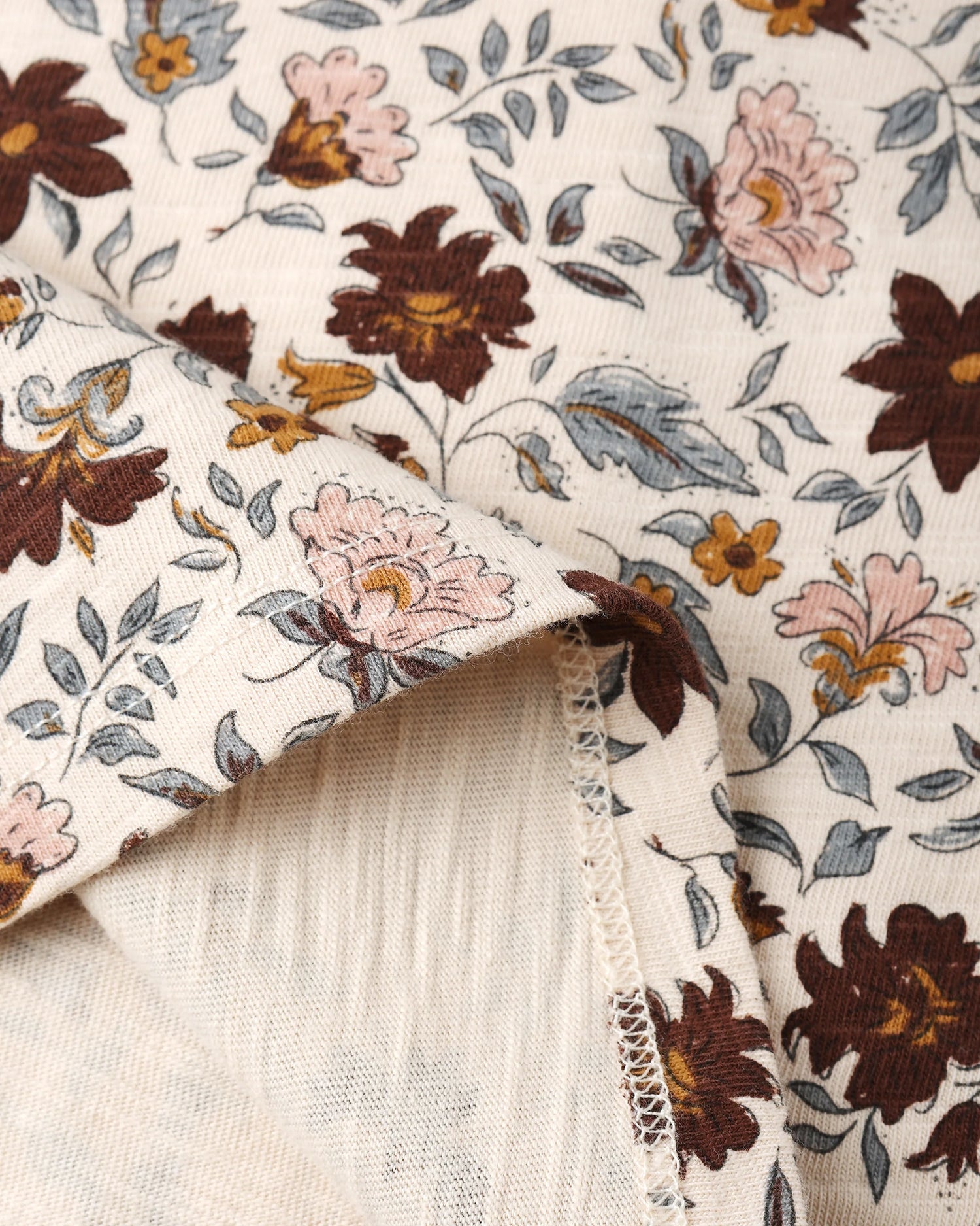 This comfortable cotton jersey set includes a relaxed long sleeve crewneck tee and dropped-crotch slouch pants. Shoulder snaps included on sizes 0–3M - 6–12M for easy changes.