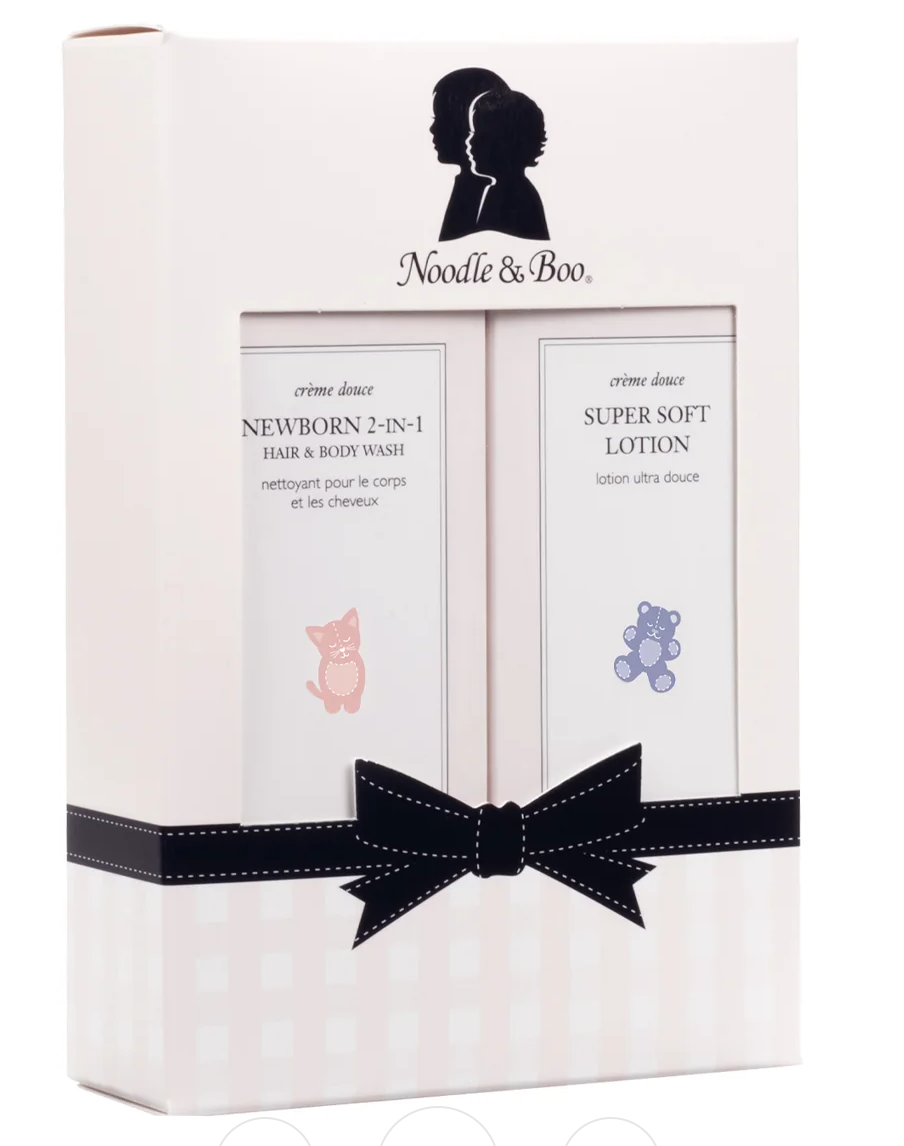 - Set includes 8 ounces of Newborn 2-in-1 Hair & Body Wash and Super Soft Lotion.