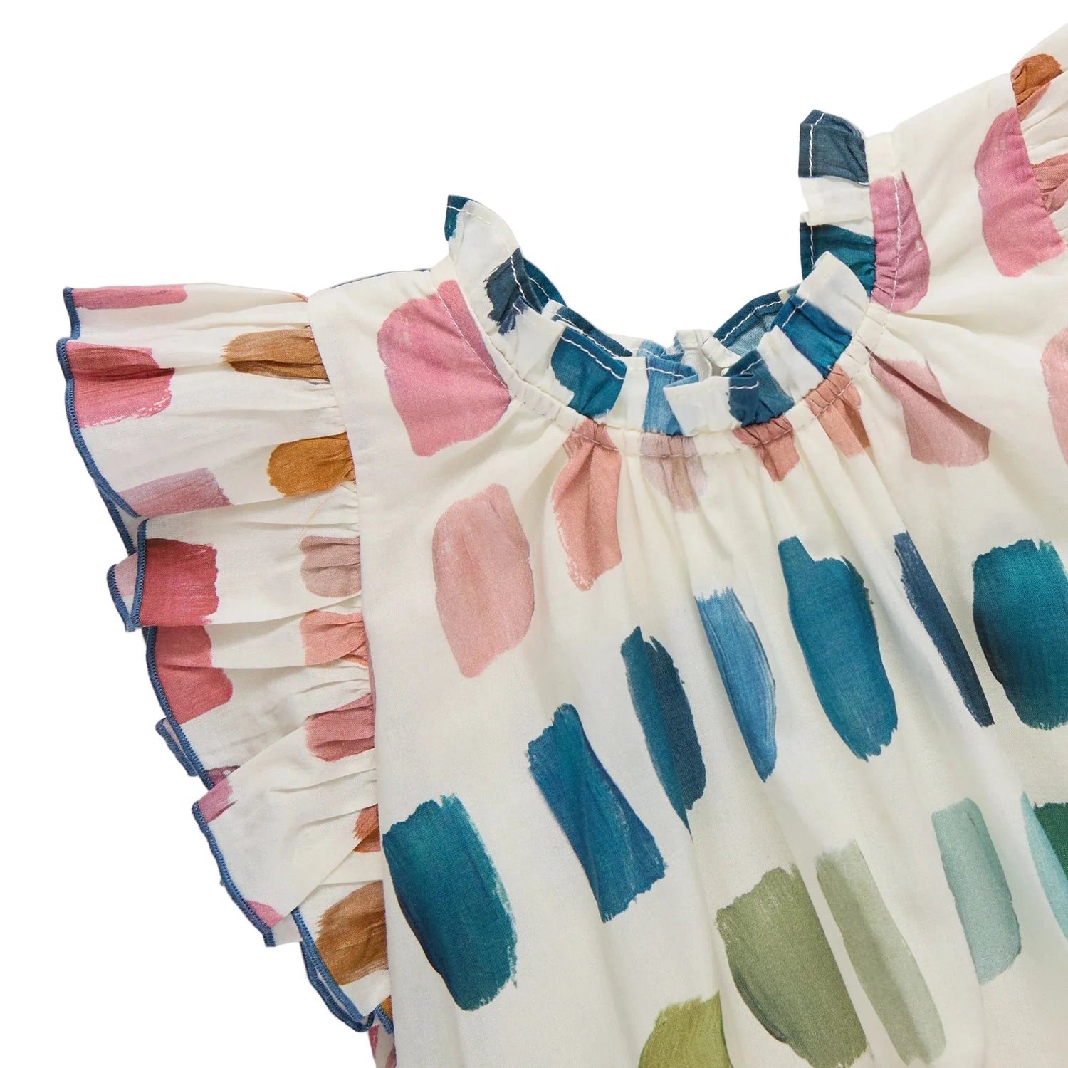 - Ruffle sleeves and neckline