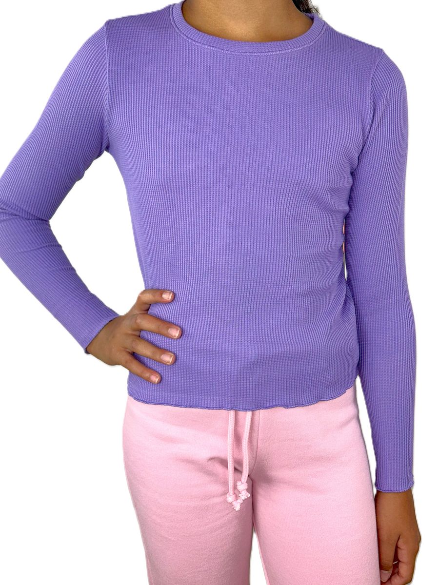 Tween girls waffle long sleeve t-shirt with thumbholes.