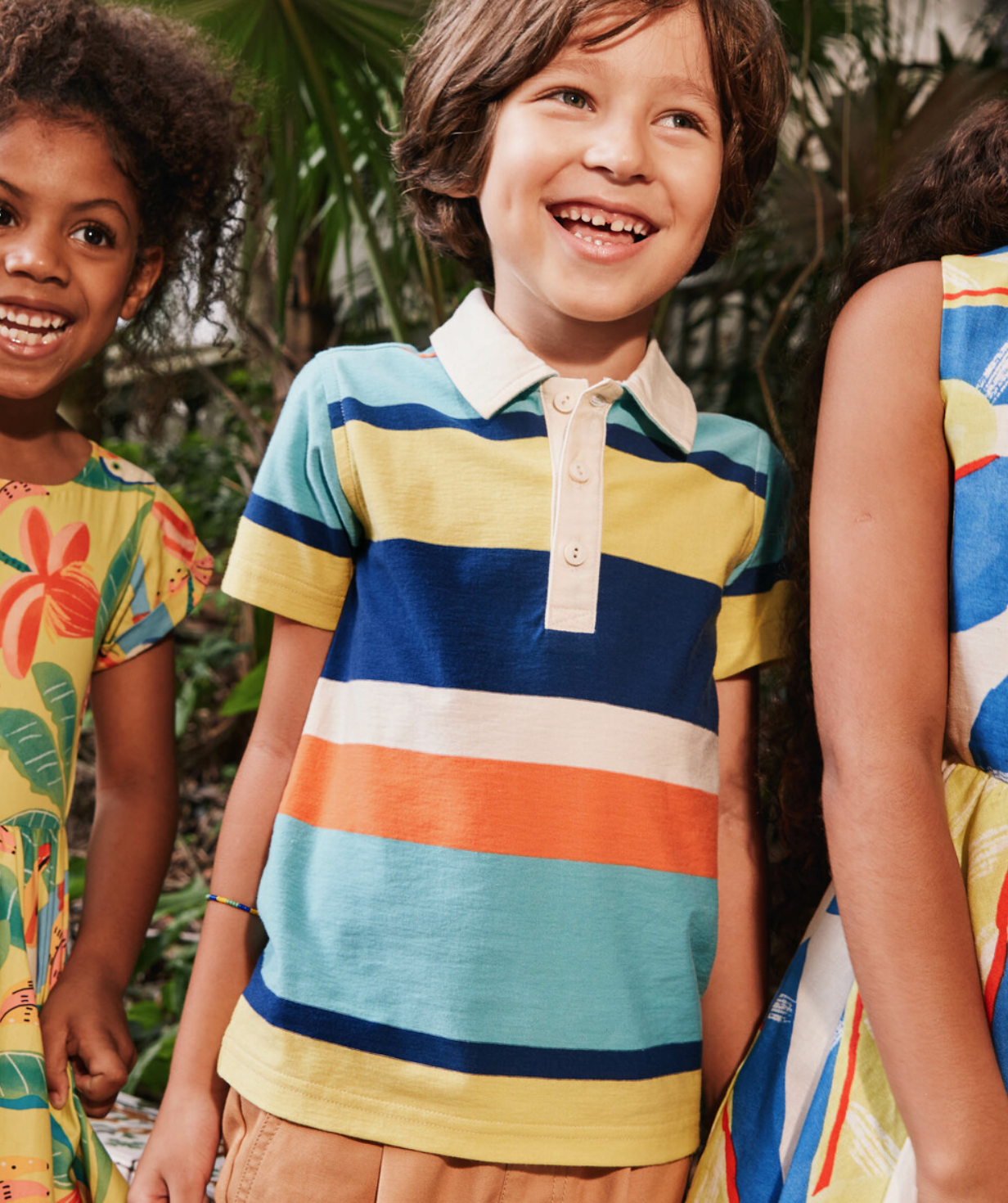 When you need some casual class to go with those summertime shorts or pants. Crafted of soft 100% cotton jersey, we've gone bold with colorful white stripes to put the pizazz into any playtime or dress-up getup. Made to keep its color and shape over time. Above thigh length.