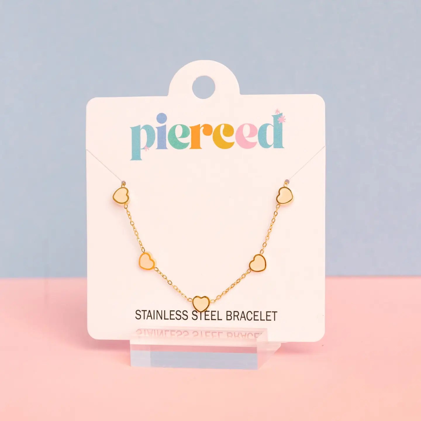 The cutest dainty bracelet made for wearing alone or stacking. We added the enamel/design on both sides so you don’t have to worry about it flipping to the backside (yes, it bugs us too). Sized perfectly for kids and adults to wear.