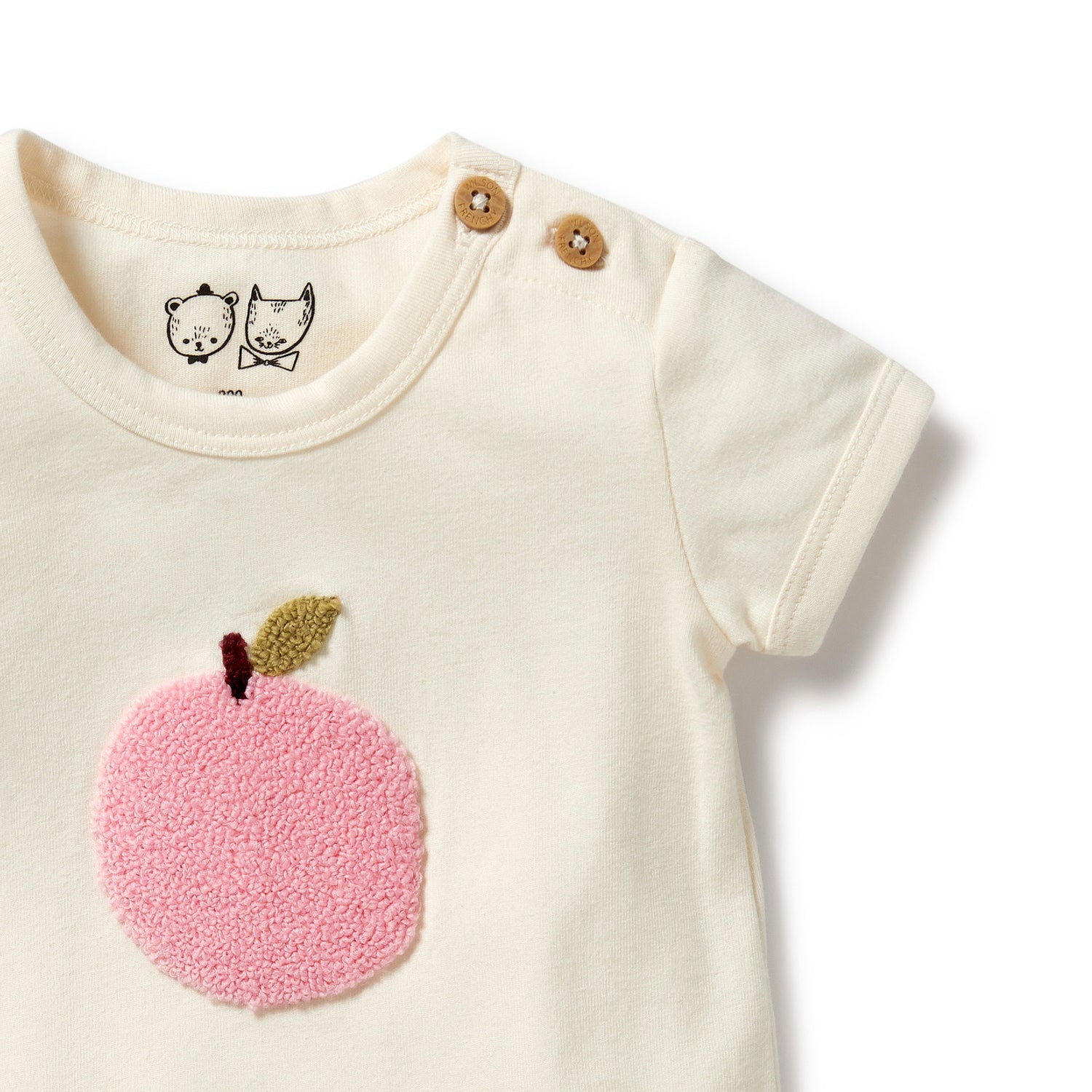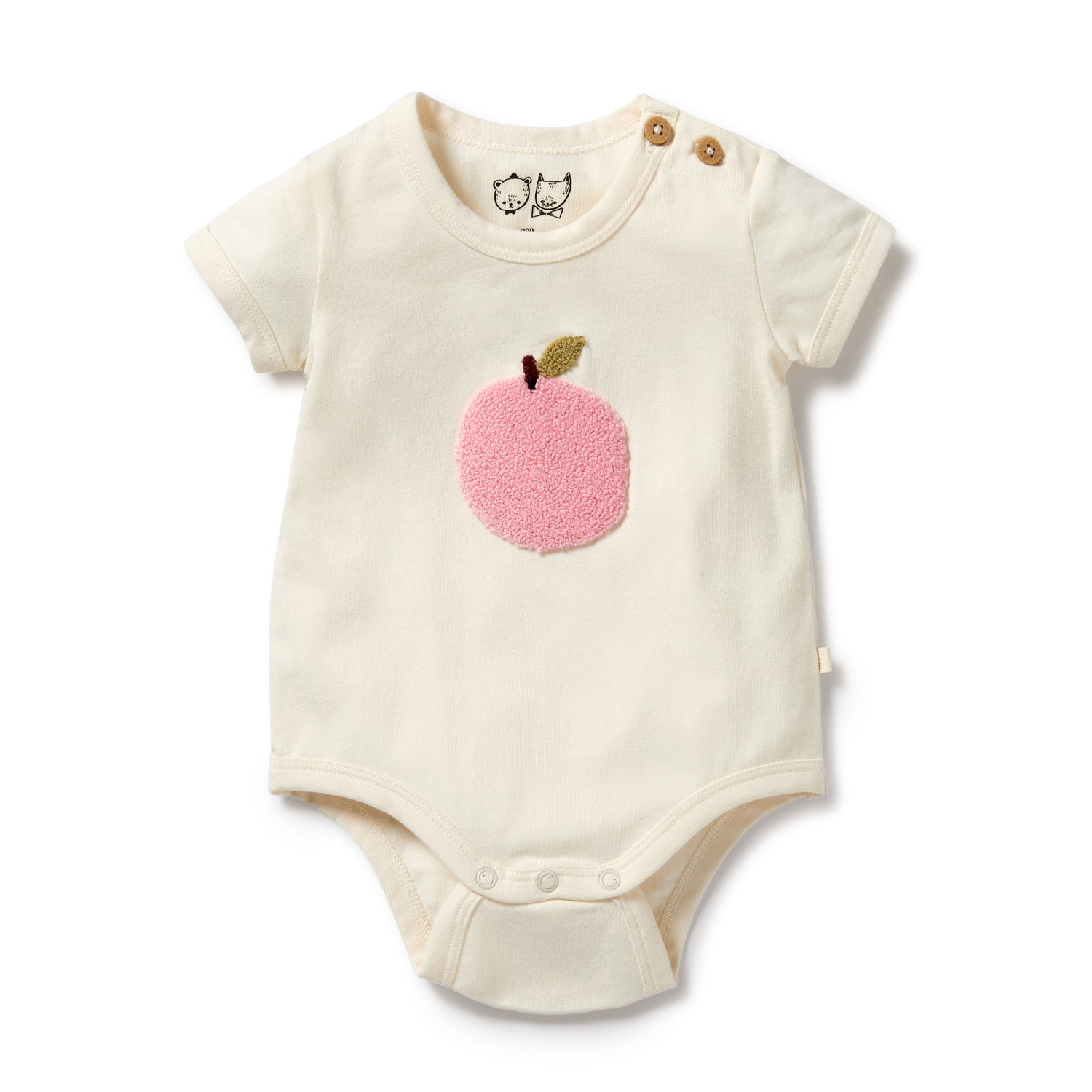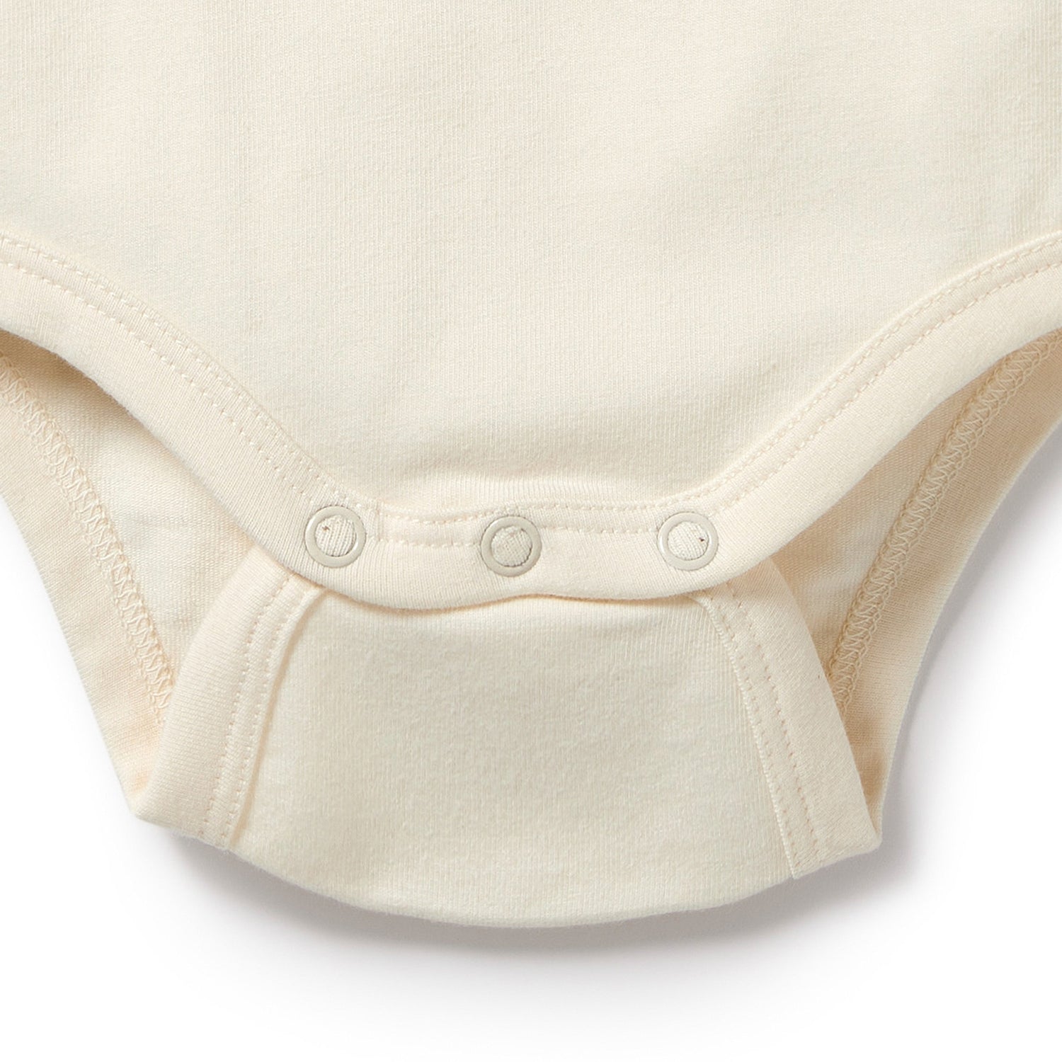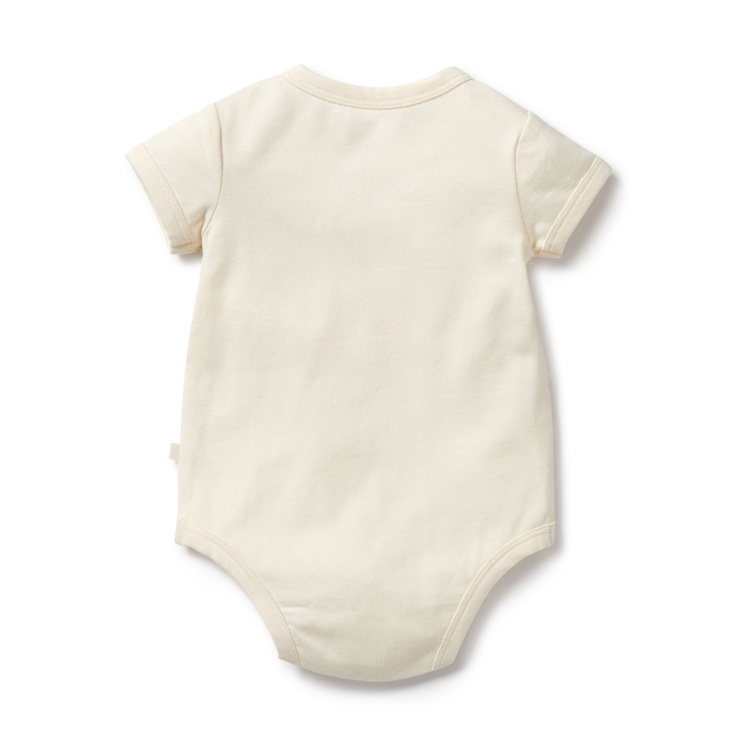 Key Features: Short Sleeved. Side neck opening with mock wood buttons. Snap leg closure for easy changes. Made with GOTS certified organic cotton. Australian owned and designed. Packaged in a bio-degradable bag.