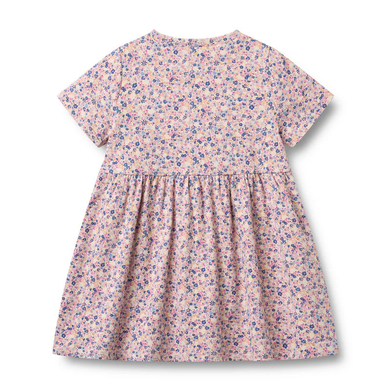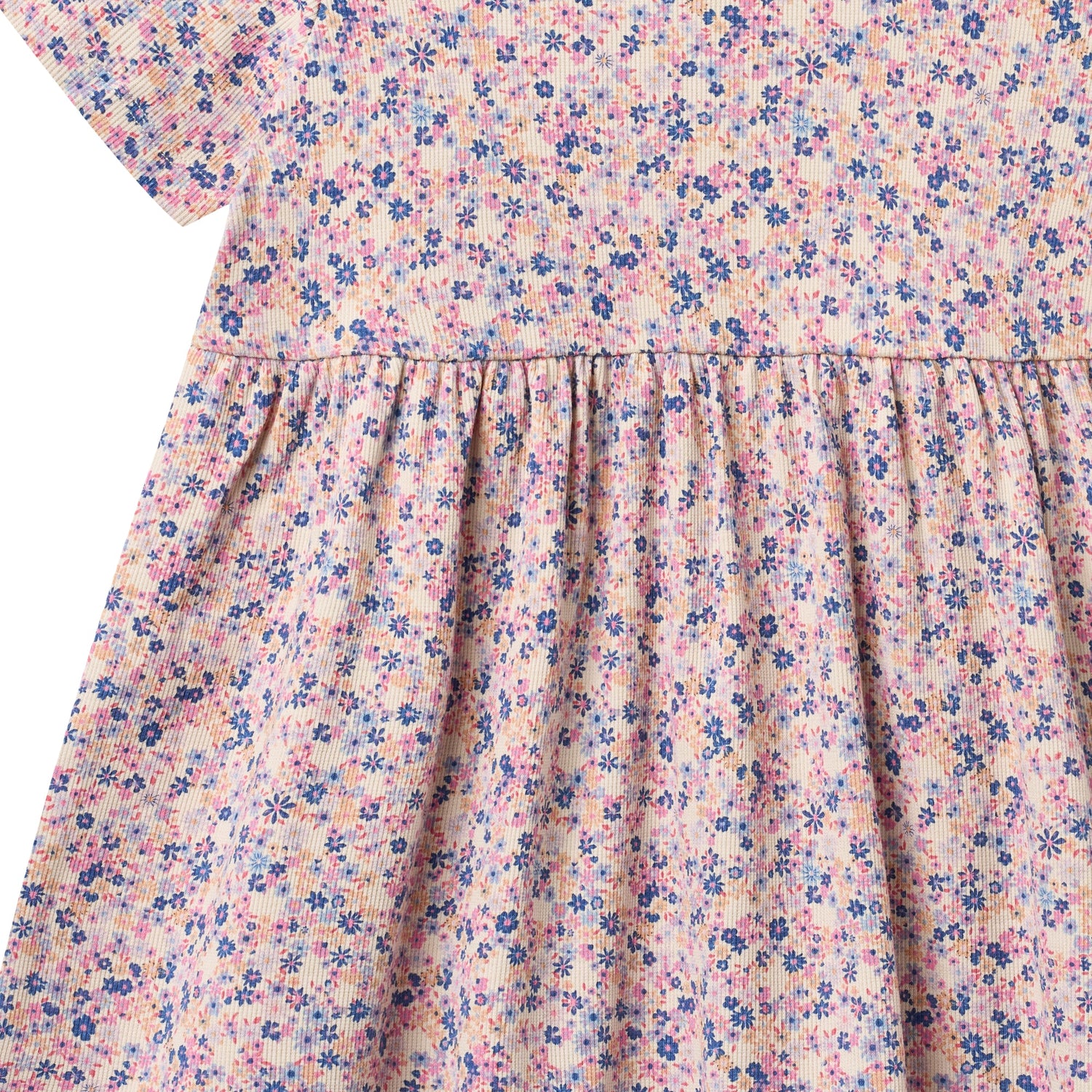 Say hello to effortless style with the Pink Blue Floral Dress, your new wardrobe MVP. This short-sleeved printed jersey number features a gathered skirt that hits just above the knee, cinched at a flattering high waistline for a silhouette that feels both relaxed and put-together. Crafted from GOTS and OEKO-TEX® 100 certified organic cotton blended with a touch of elastane, it moves with you all day long. Machine washable and ready for anything—from weekend adventures to everyday magic.