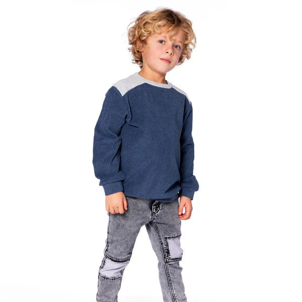With contrast shoulders and contrast elbow patches, this casual shirt adds instant charm to any boy's wardrobe. Made from brushed flat back rib, this midweight top features long sleeves, a crew neckline, and a signature logo label at the hem.