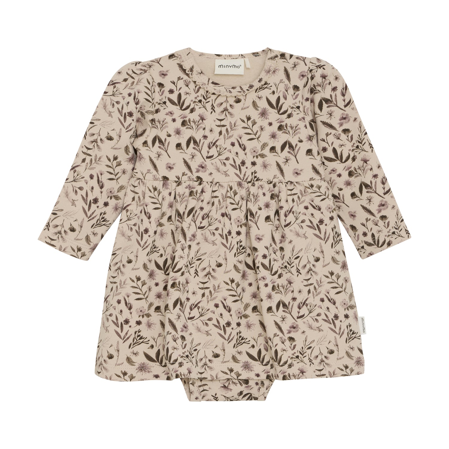 Long-sleeved dress with a lovely floral all-over print from Minymo. The dress features a built-in bodysuit with snap buttons, making it easy to put on. It has a pretty detailed collar and an elastic waistband that helps create a sweet fit. The dress is made from a viscose blend, which ensures soft comfort.