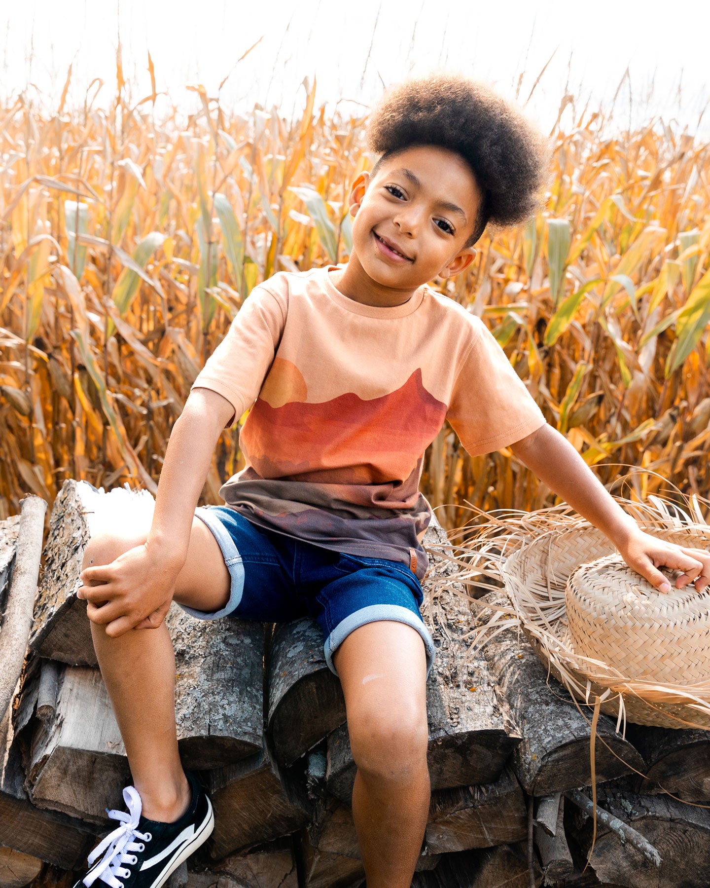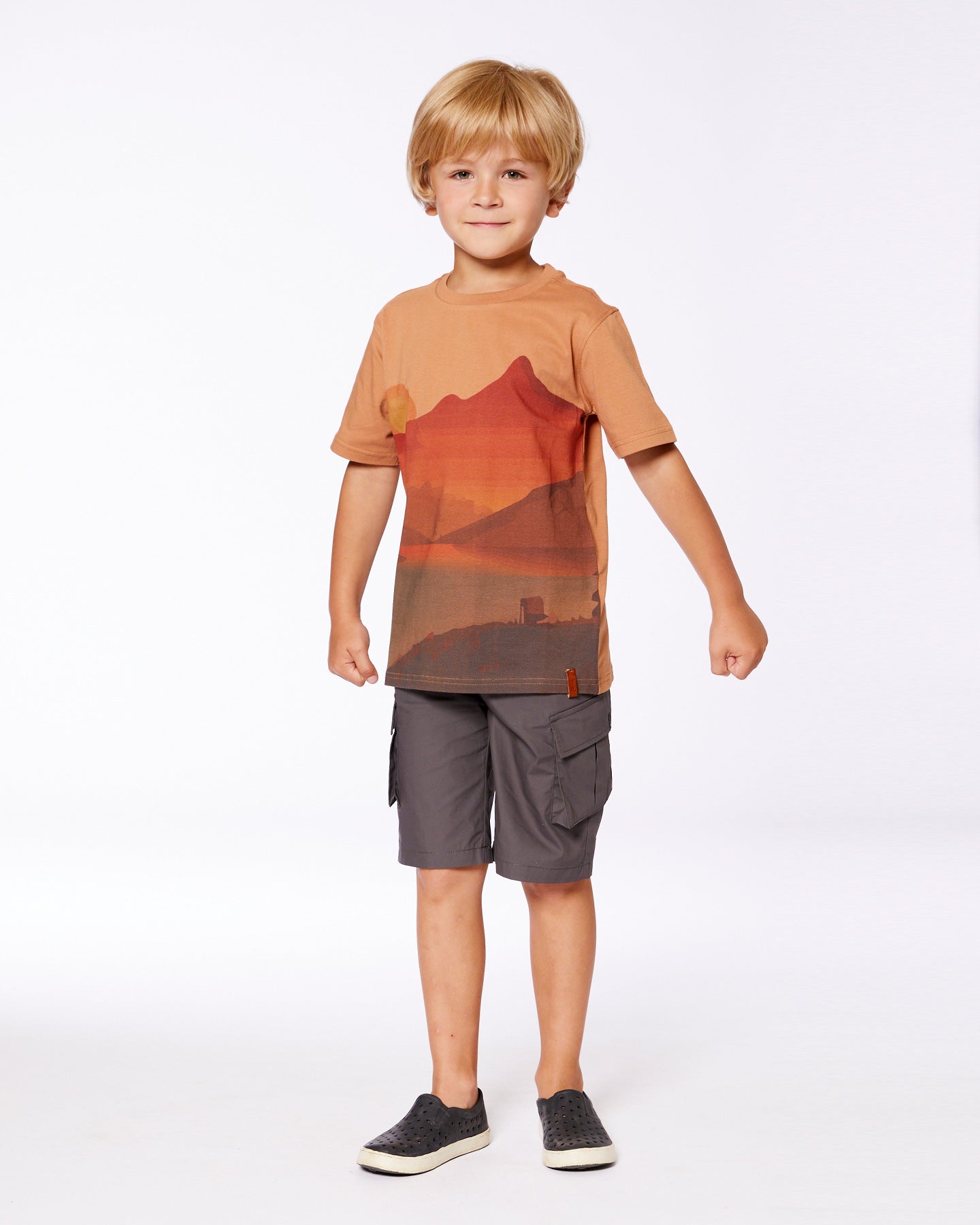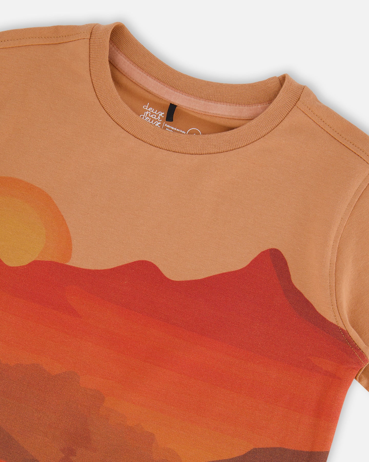 A mountain and lake print graphic adds bold color and eye-catching style to our Printed Organic Cotton Tee Orange Sunset. This soft and stretchy cotton tee features short sleeves, a crew neckline, and an allover print that makes it perfect for any spring or summer day.