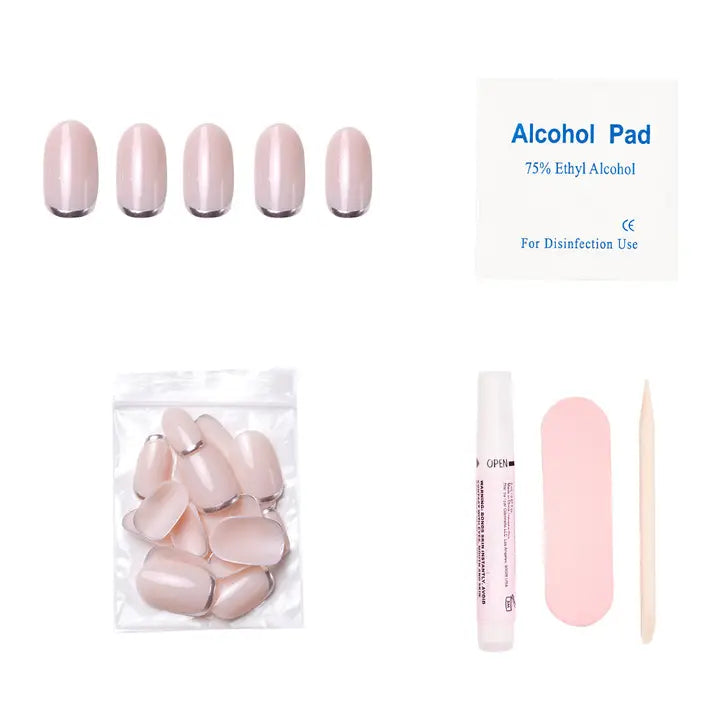 Press on nails that are intuitive, trendy, & simplify the beauty routine. If you love a neutral, everyday look, then Silver Belle is for you! This is the silver-hued sister of our top-selling Goal Digger, and will effortlessly take you from day-to-night with timeless elegance. Plus, the highly popular short round shape gives you a casual, but elevated style that you'll love to wear again and again. Customizable, reusable, & stay on for up to 2 weeks with added UV finish, providing a glossy, shiny, & seamless appearance.