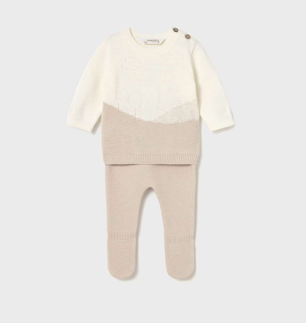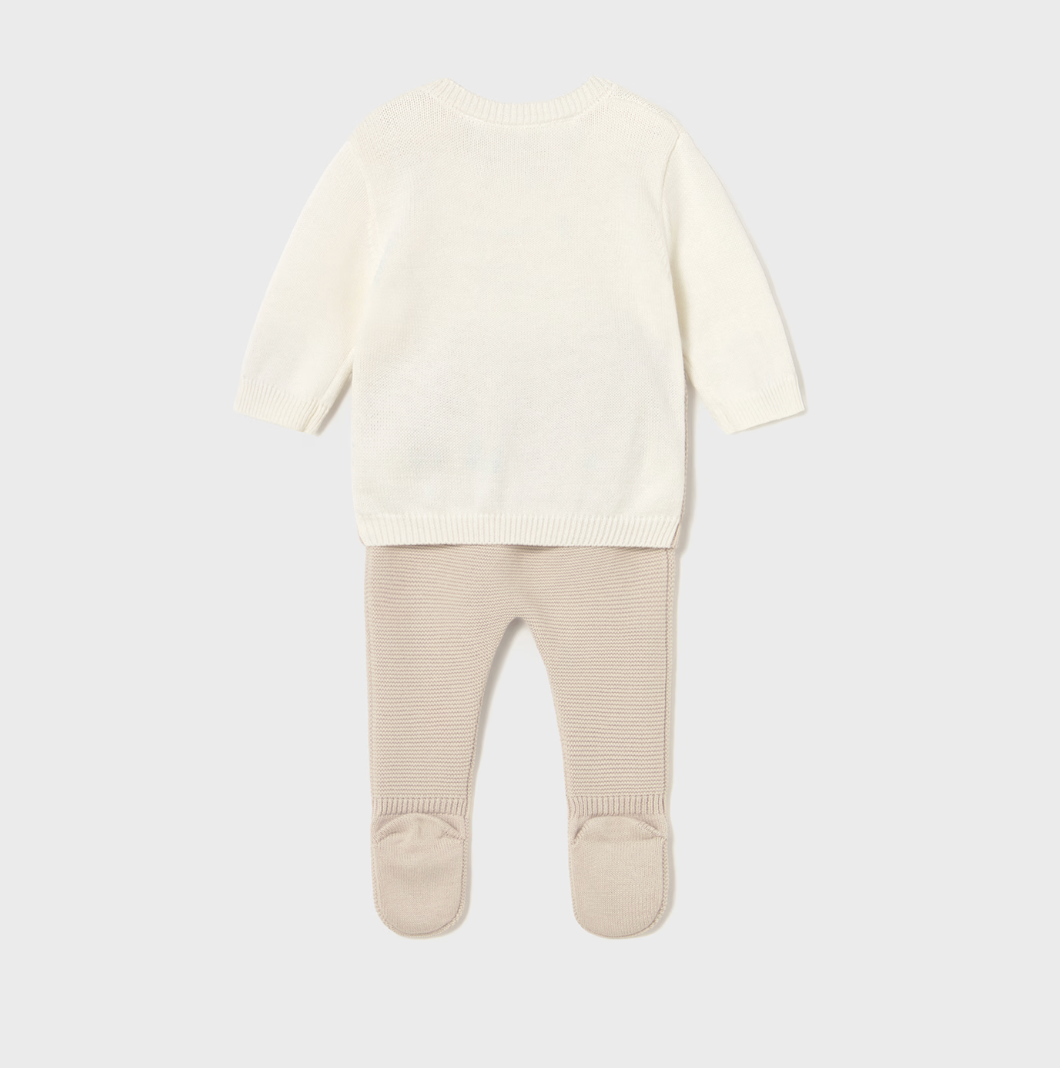 This two-piece tricot set for baby boy includes a sweater with matching leggings.