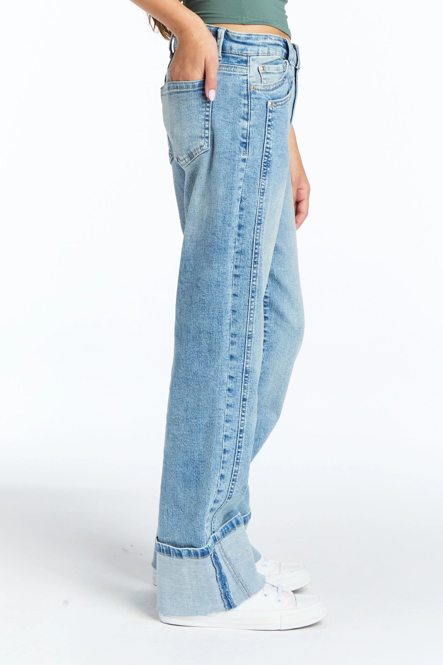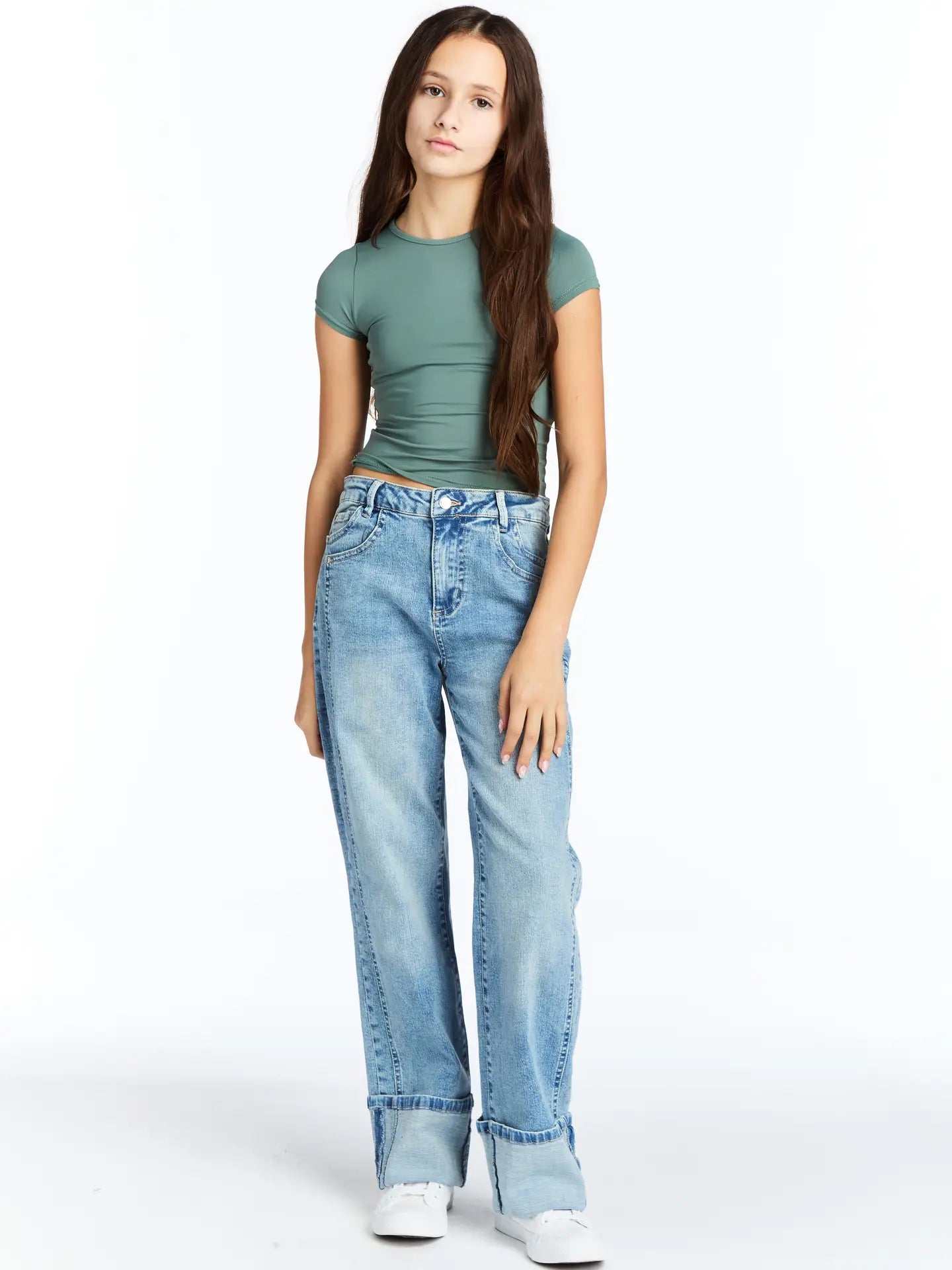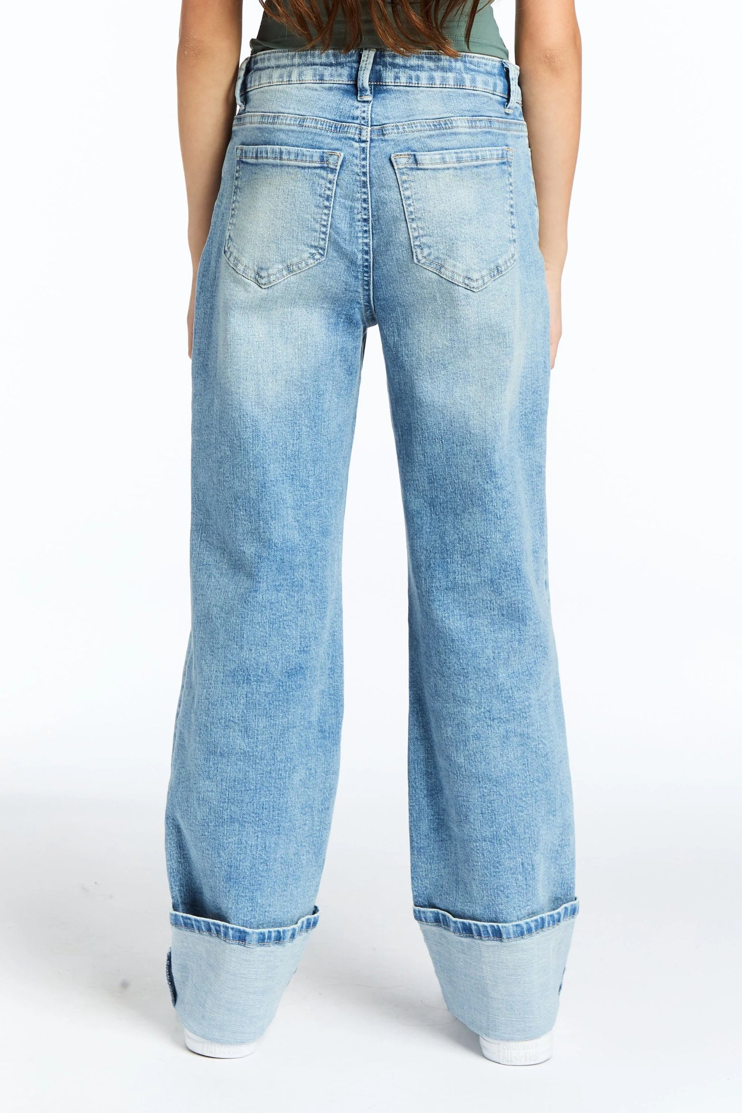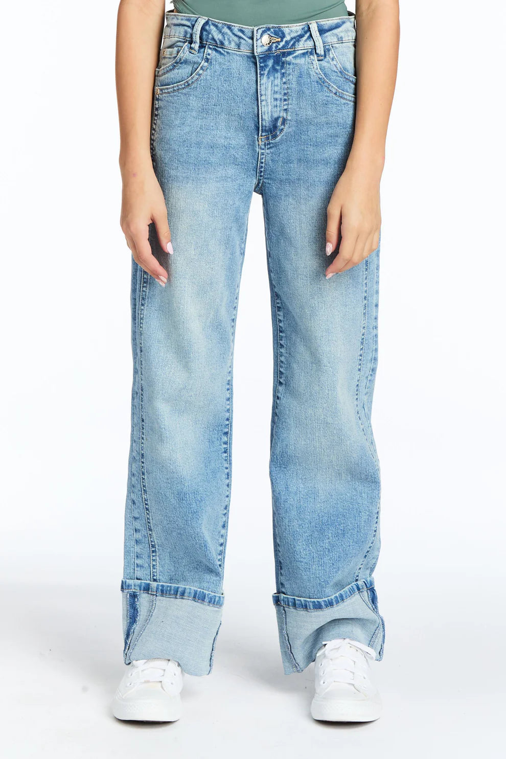 These jeans add a bold twist to a classic silhouette. Featuring a unique two-tone denim design and a trendy cropped straight-leg fit, these jeans are perfect for a modern, fashion-forward look.