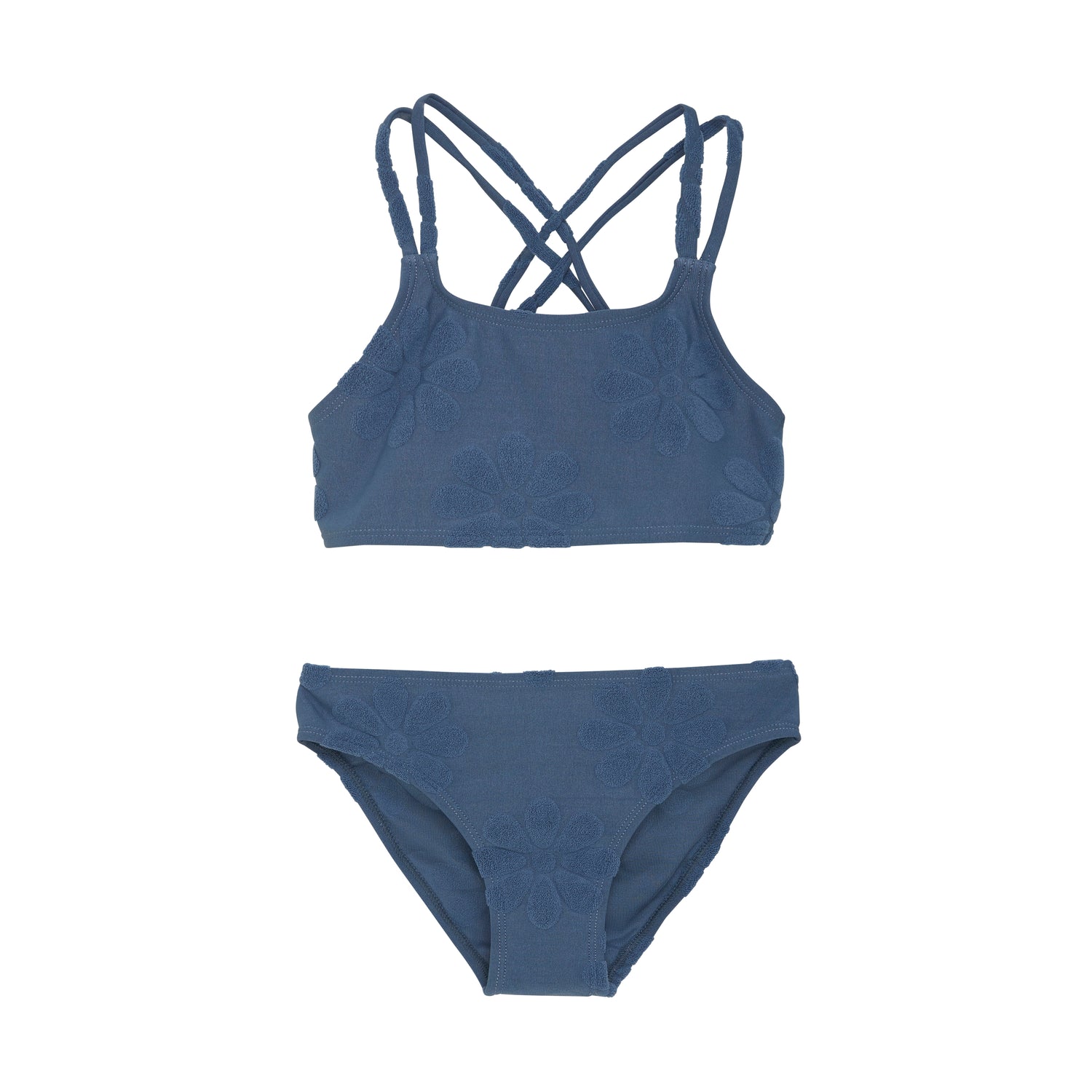 Bikini from Color Kids with narrow straps that form a cross on the back to keep them from falling down. The bikini has a nice structured floral pattern and a perfect fit. The bikini dries quickly and has a lot of stretch.