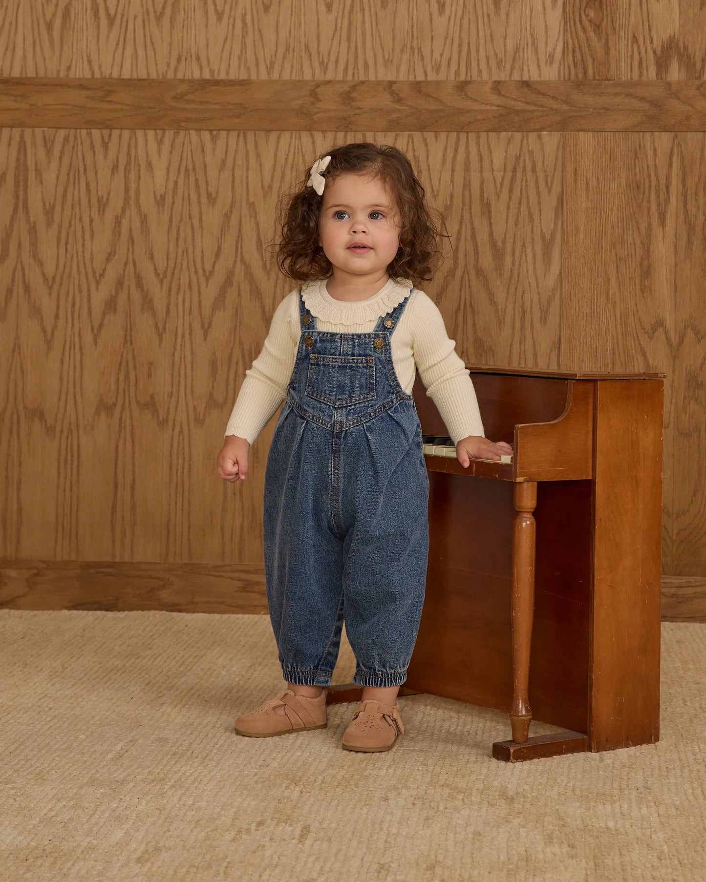 These vintage overalls are a classic look for little ones. Featuring shank buttons at the straps, back pockets, and a lot of cute.