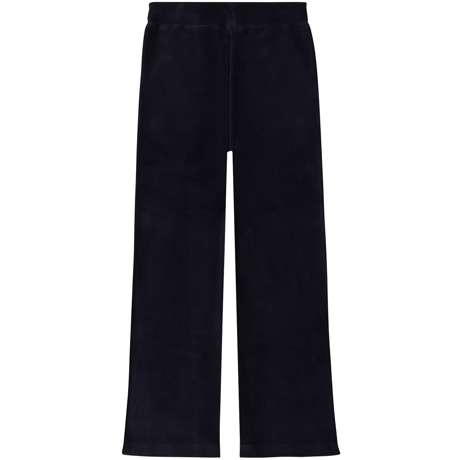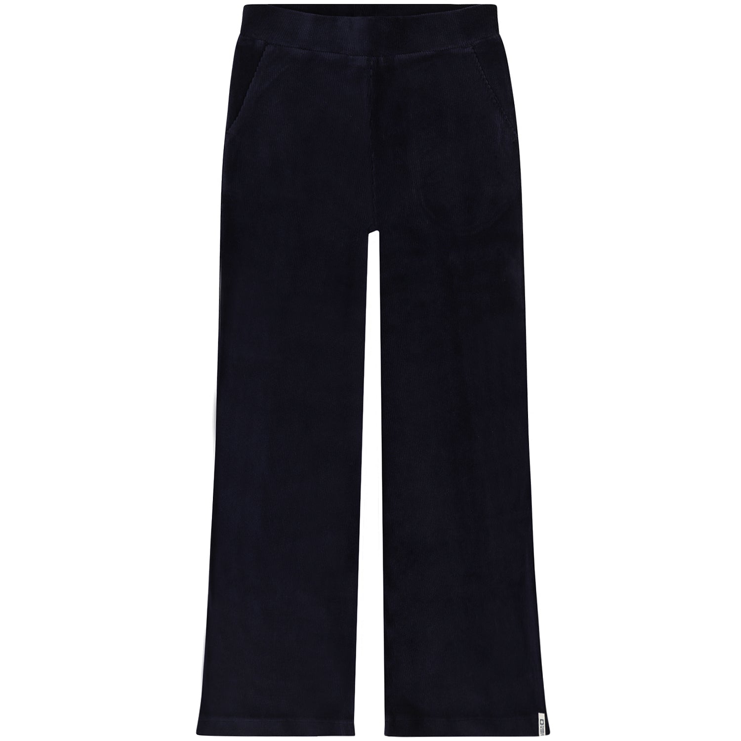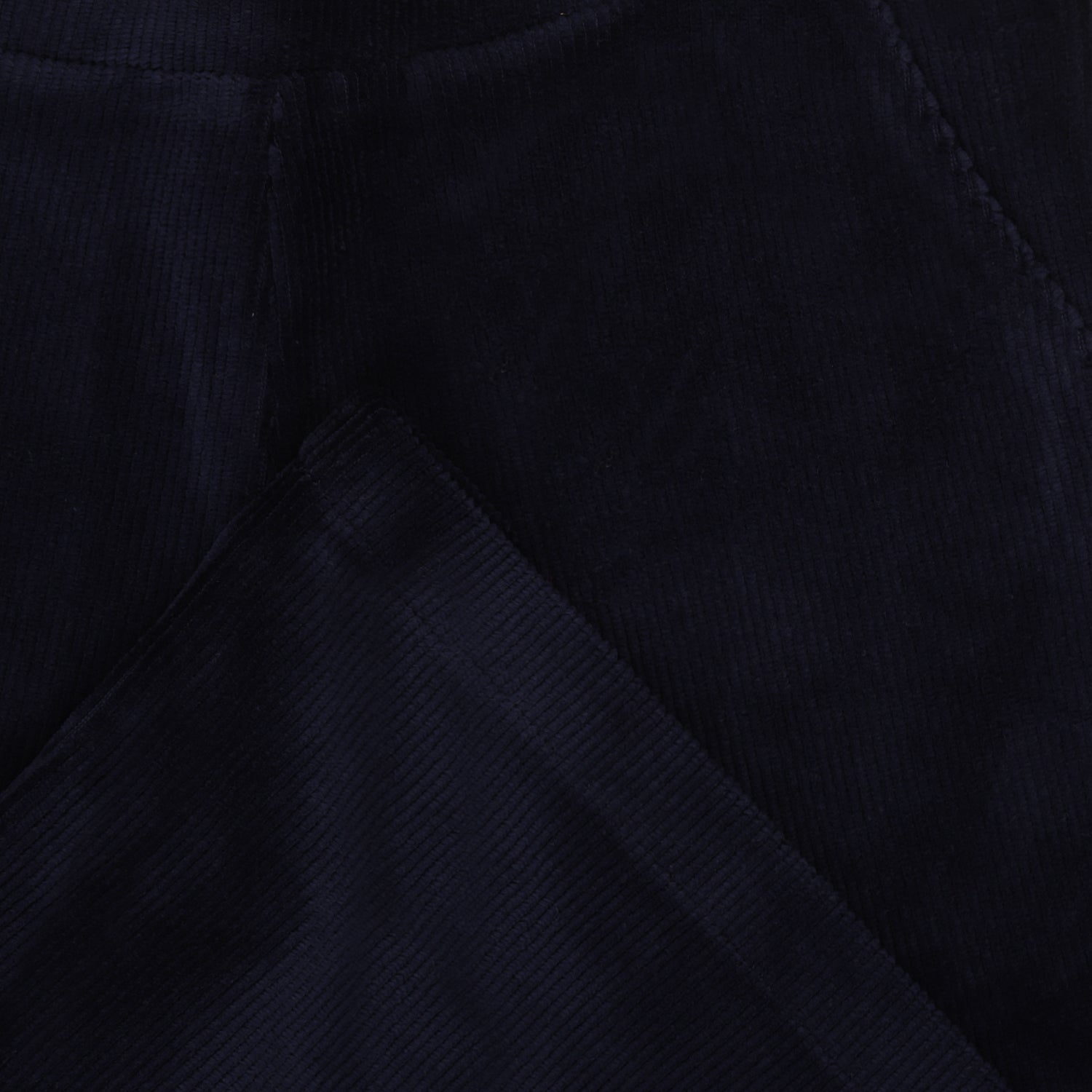 These dark blue flared leggings in soft ribbed fabric have an elastic waistband and two side pockets.